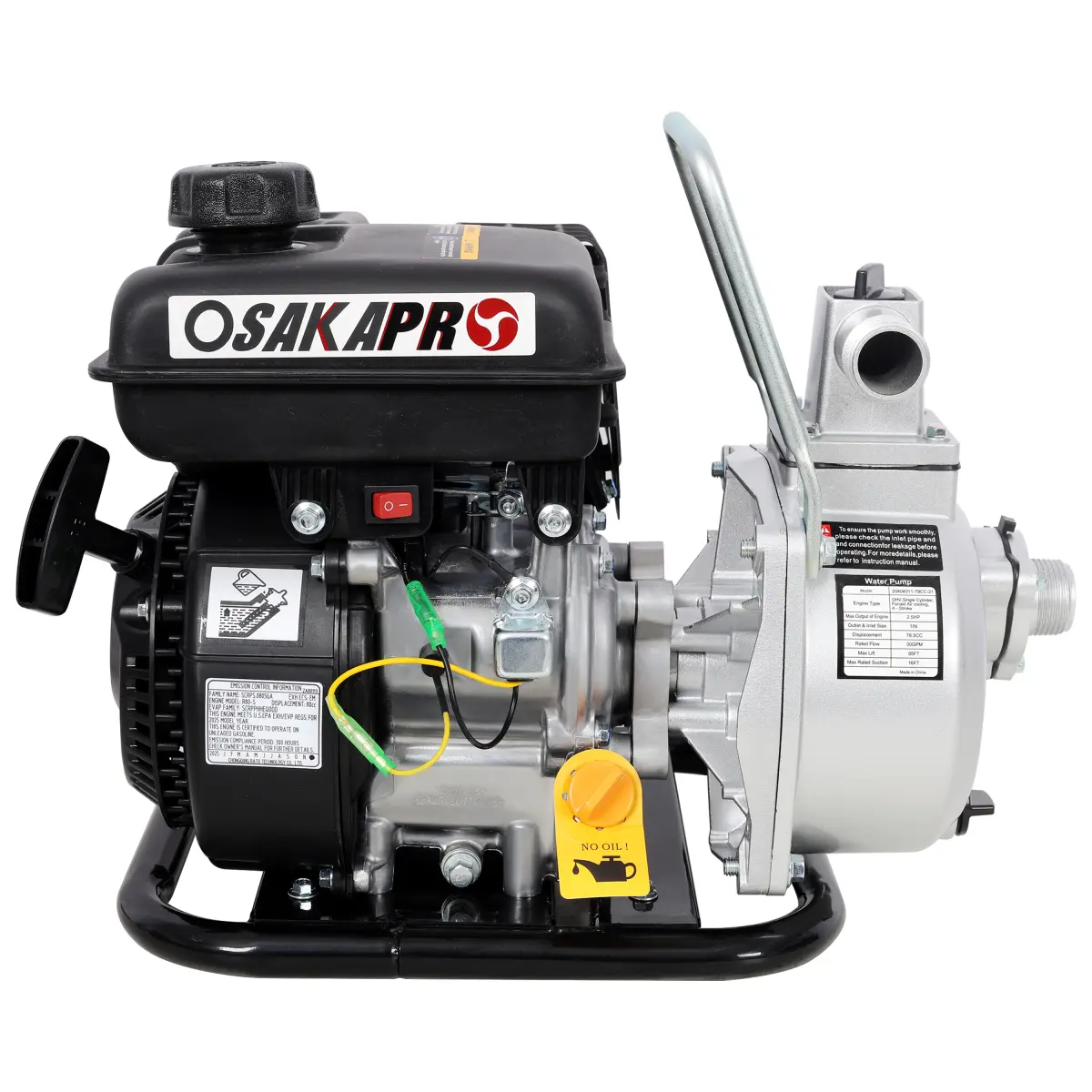 Item Code: W465P405937 Product Type: Single Box Product Product Name: Gas Powered Water Transfer Pump, Portable Petrol High Flow for Garden Farm Irrigation, powerful 2.5HP 78.5cc 4-Stroke engine, EPA compliant Color: Black Material: Plastic