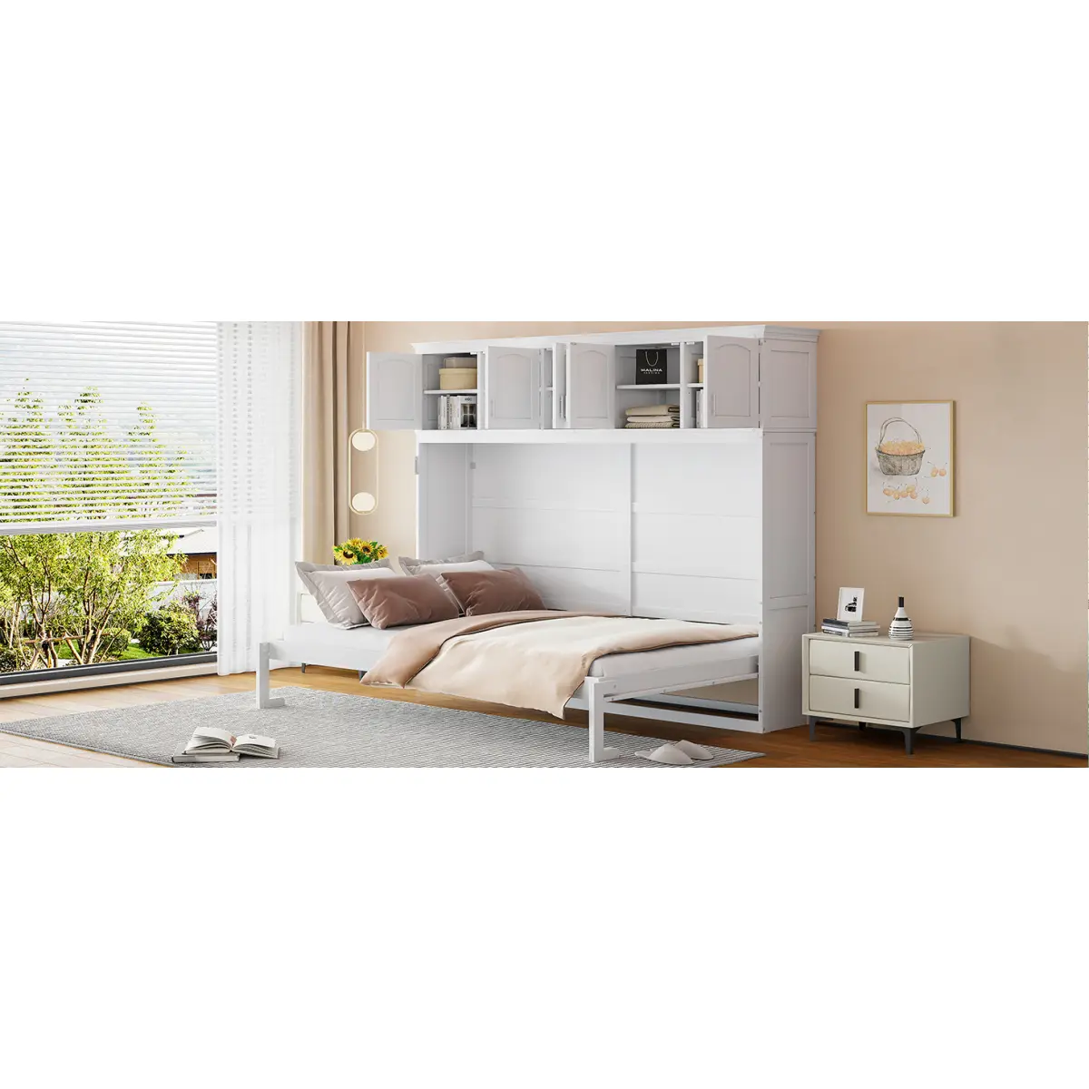 ·[Multi-function] This Murphy bed can be folded away into a cabinet to open up floor space in any room.A wall bed is the ideal space-saving furniture for a multi-use guest room, home office, or home gym.