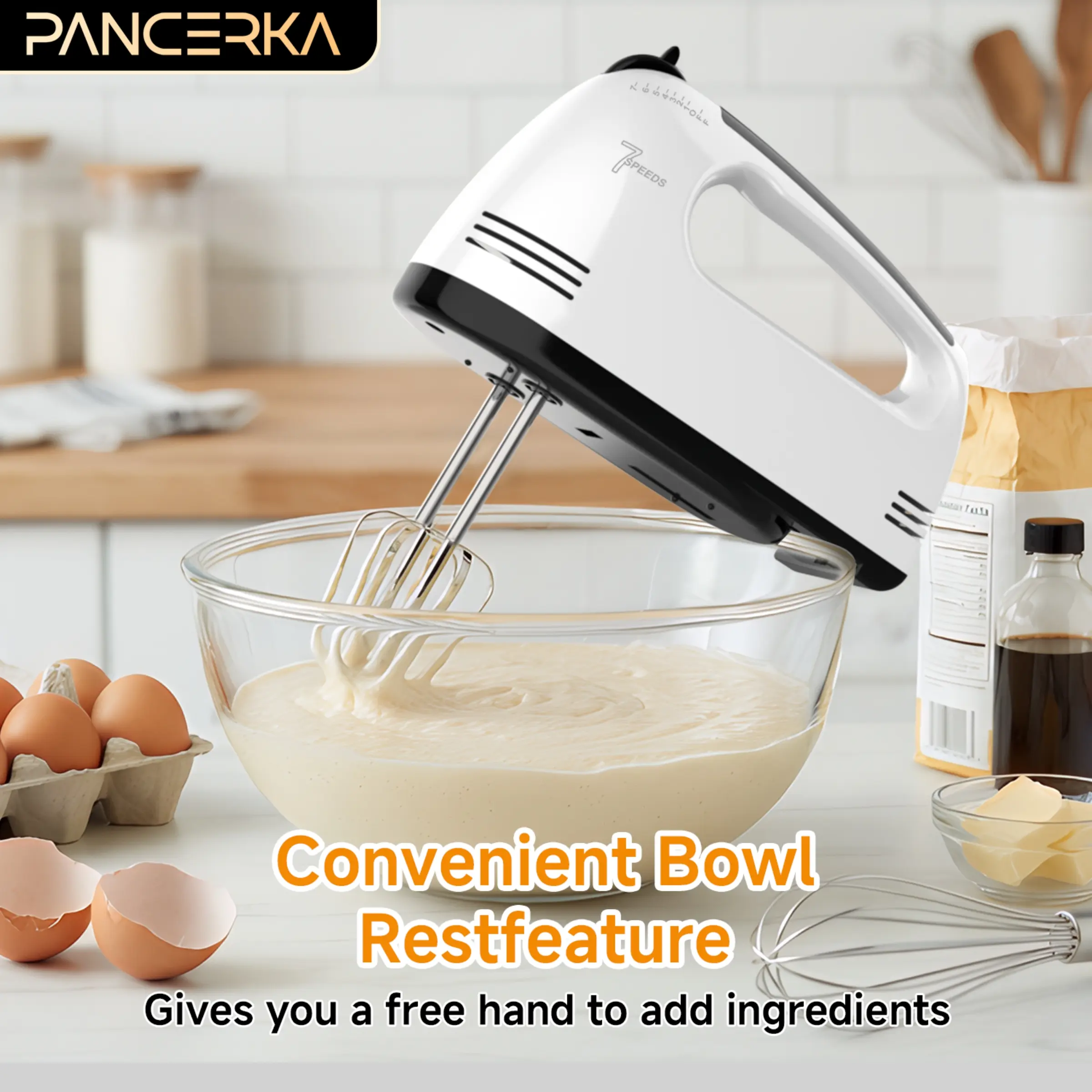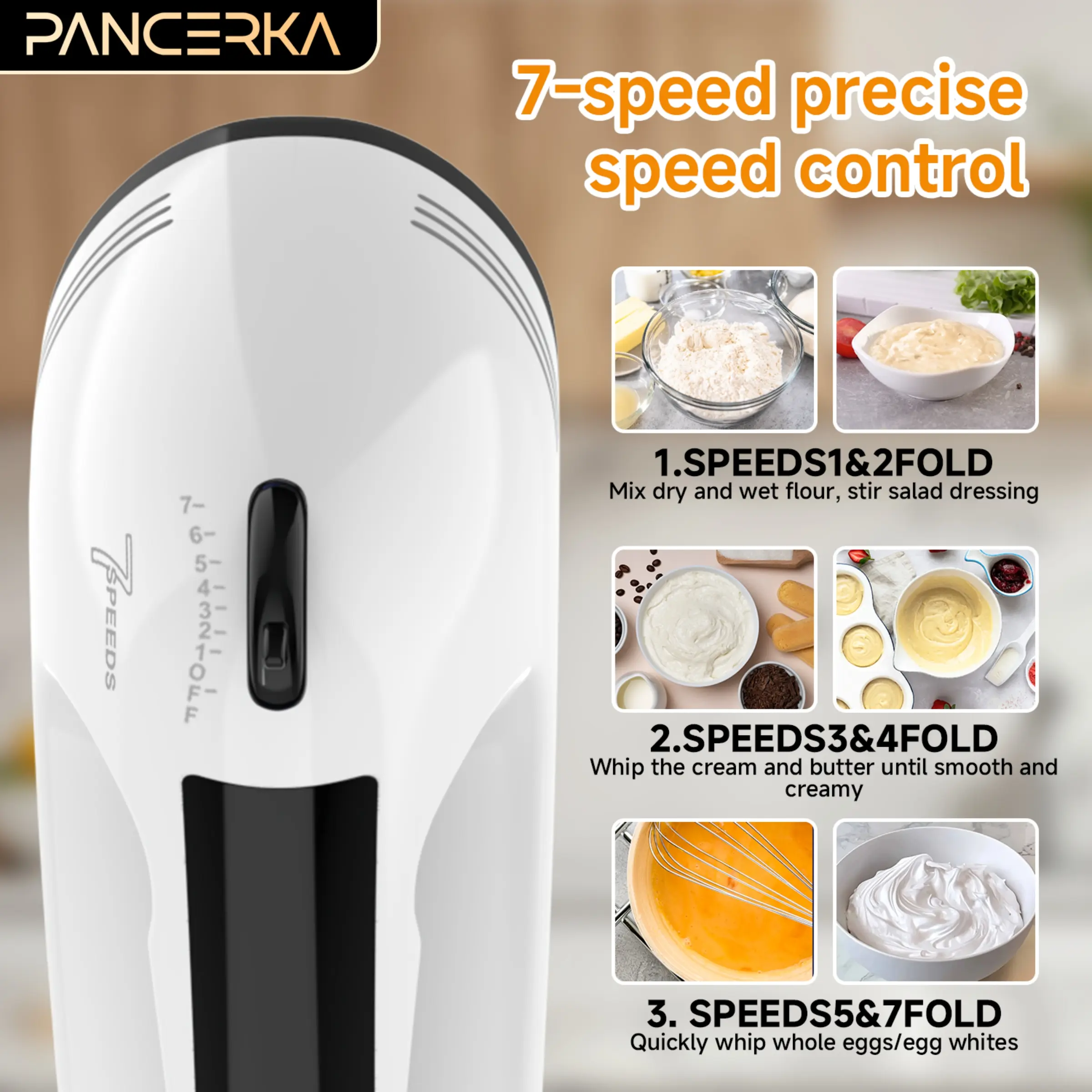 Hand Mixer, 7-Speed Electric Kitchen Mixer with 5 Stainless Steel Attachments, Electric Whisk for Kitchen Baking, Snap-On Storage Case