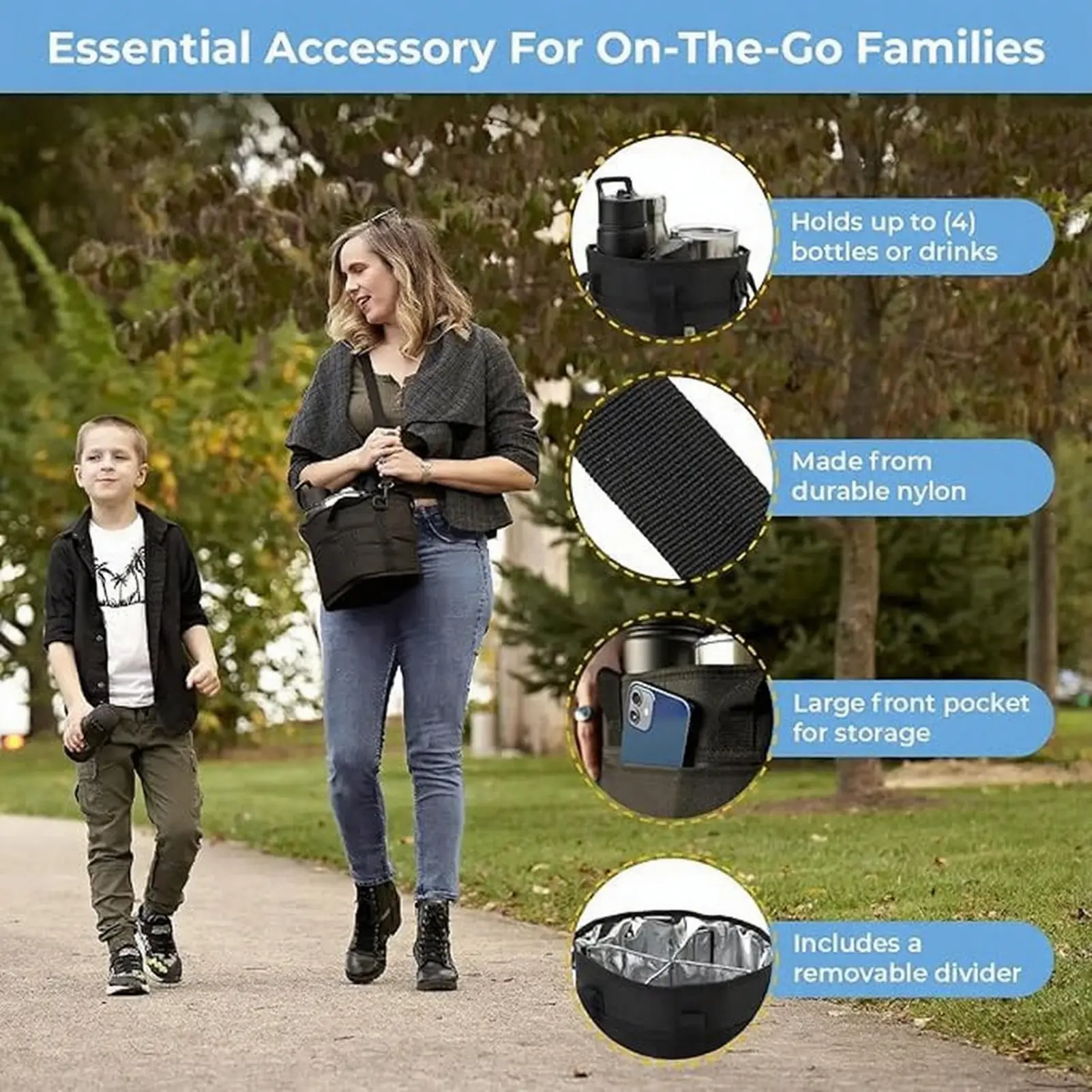 Family Size 4-Compartment Drink Bag with Adjustable Strap Waterproof Nylon Insulated Beverage Holder for Hiking Walking & Outdoor Activities - Organiser