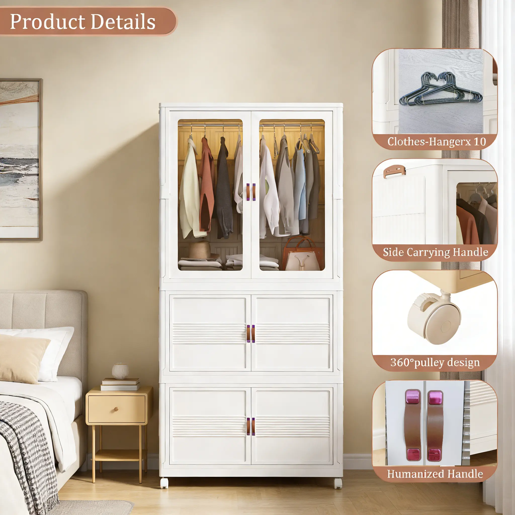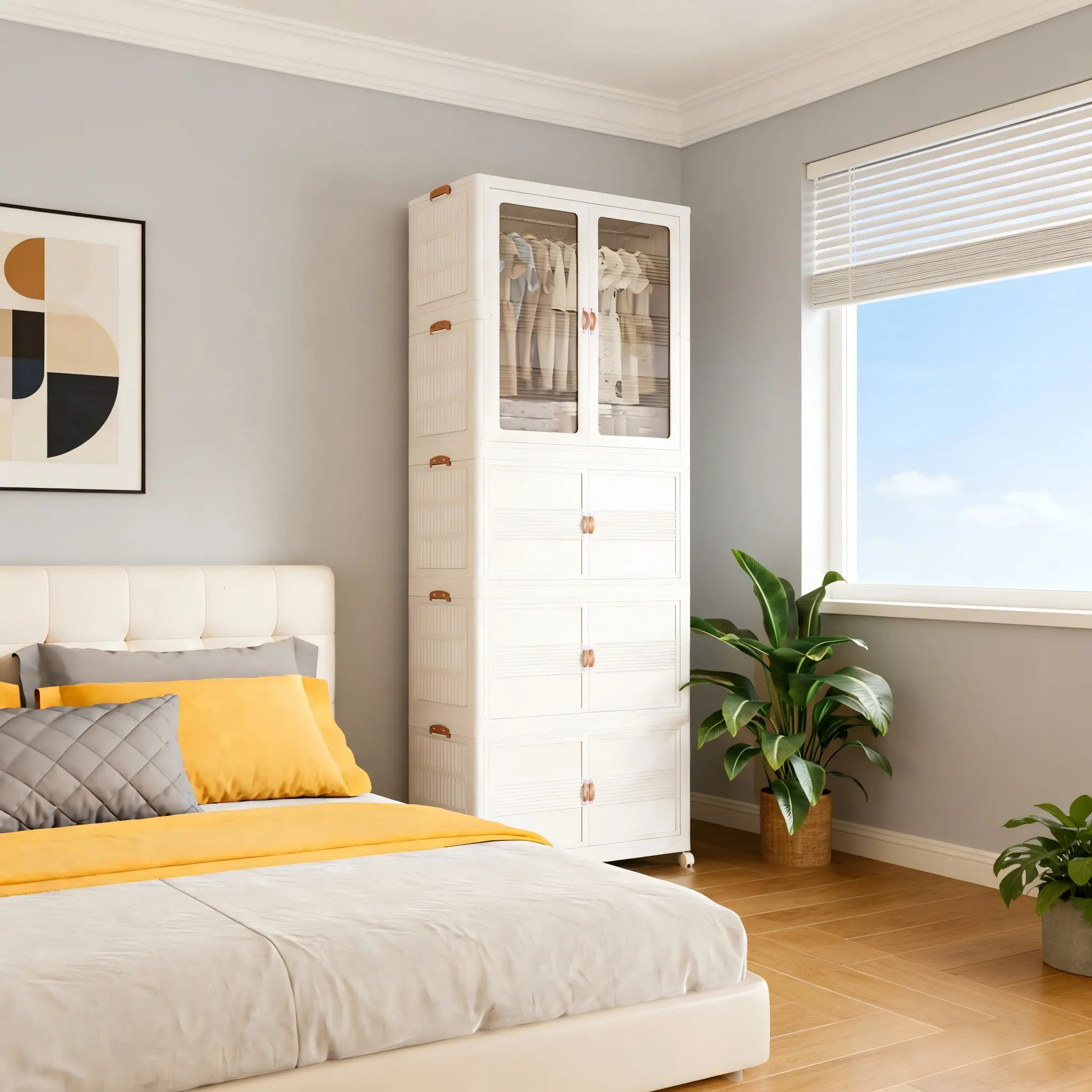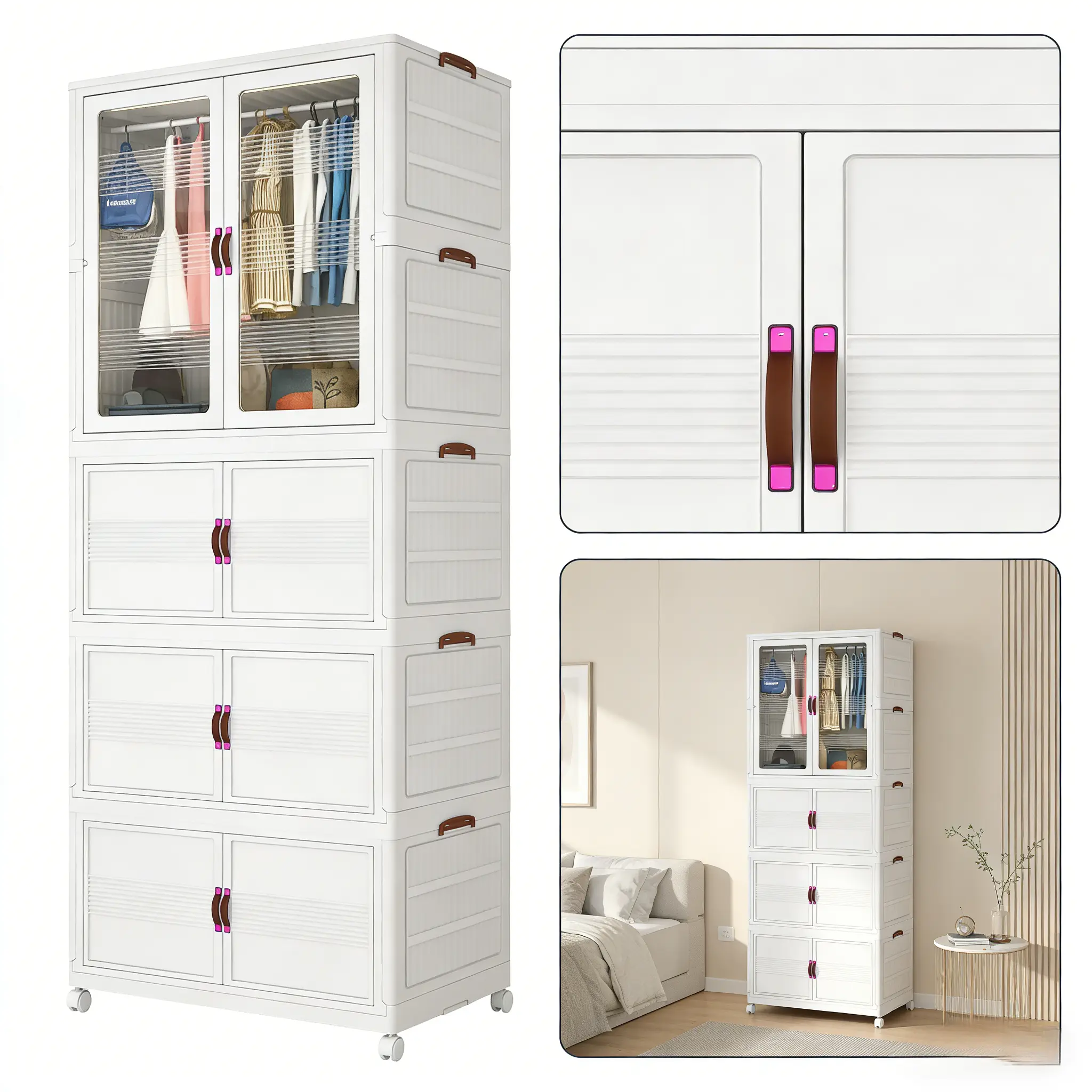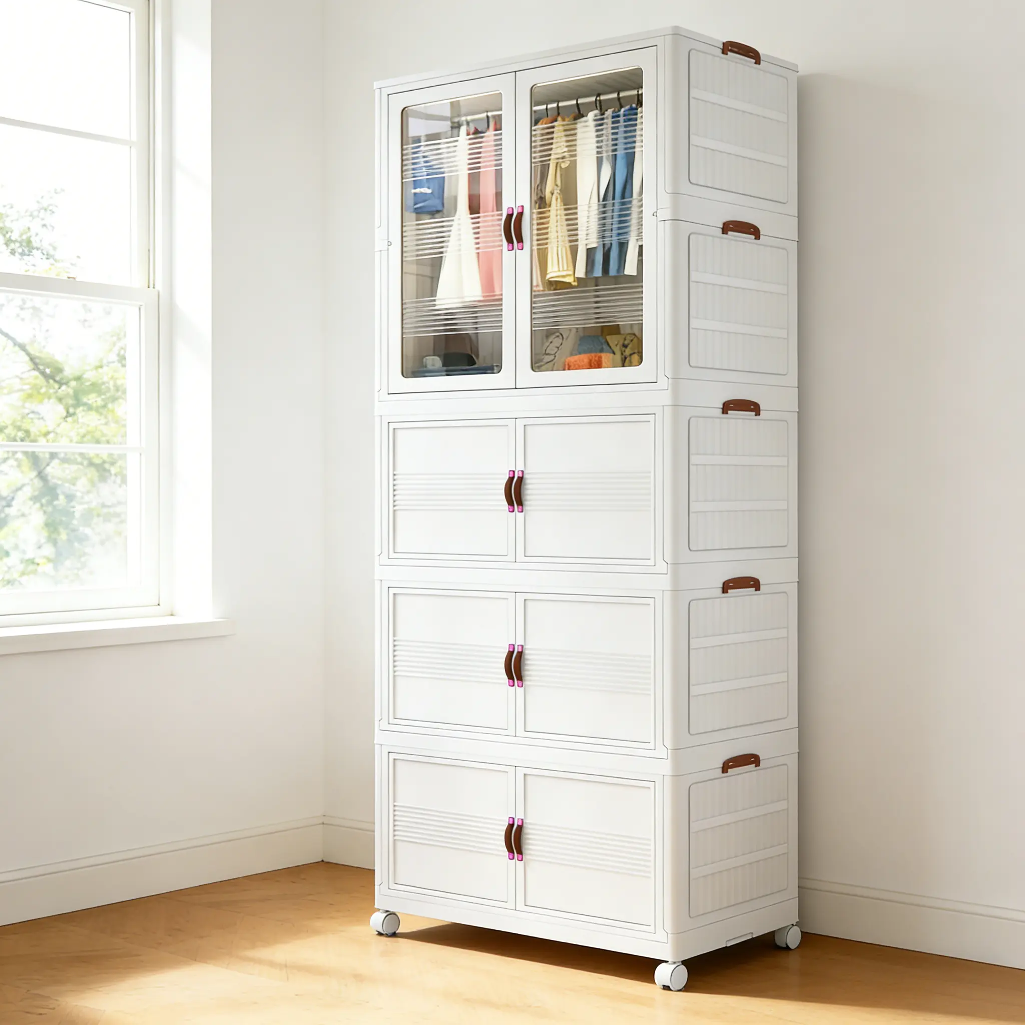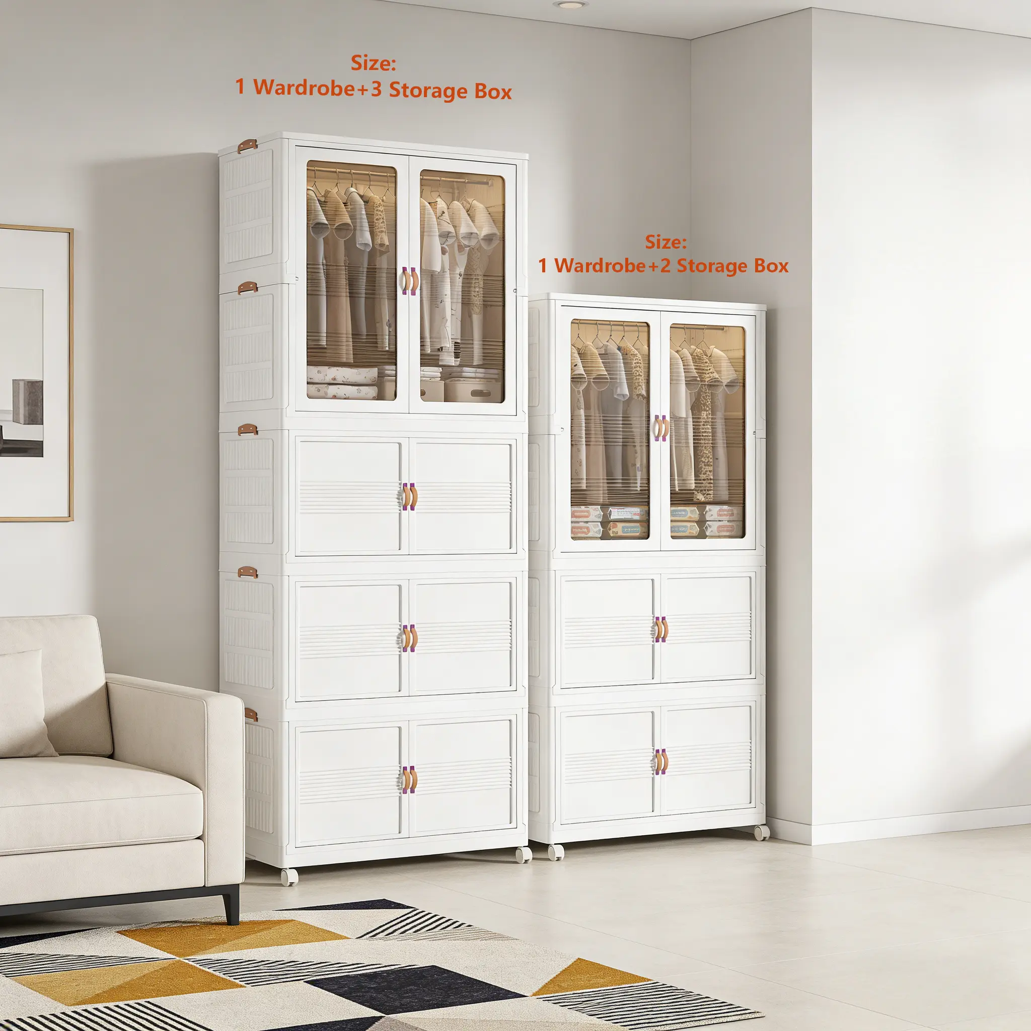 Stylish wheeled wardrobe storage box – foldable and stackable wardrobe with doors, saving space, suitable for bedrooms and dormitories.
