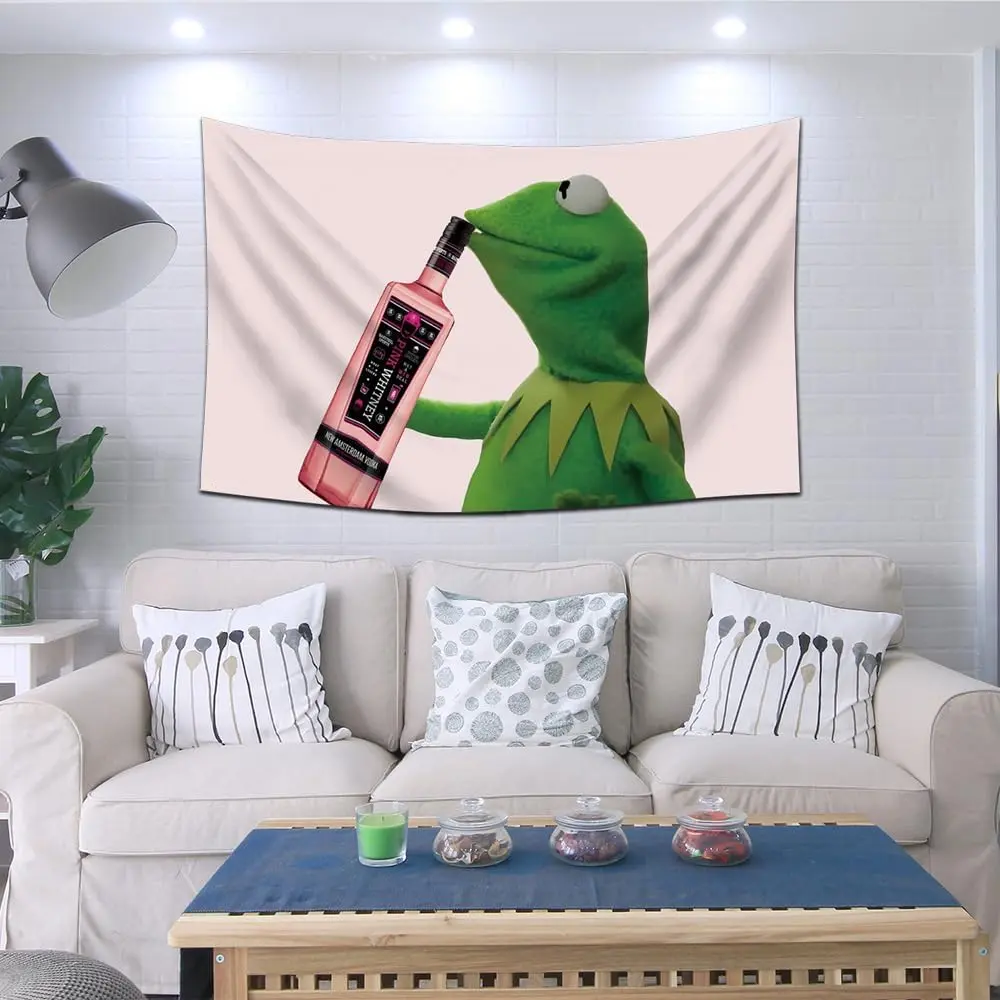Kermit Sipping Pink Whitney Tapestry 60x40inch Banner Funny Tapestry for College Dorm