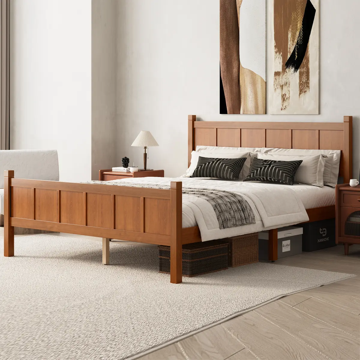 ·Elevated Platform with 11.5" Under-Bed Storage:With an 11.5-inch clearance from the floor to the bed base, this platform bed offers generous under-bed storage space.Perfect for storage bins, baskets, extra bedding, or seasonal items, it helps you maximize bedroom organization while keeping clutter out of sight.This thoughtful design adds practical functionality without compromising style.