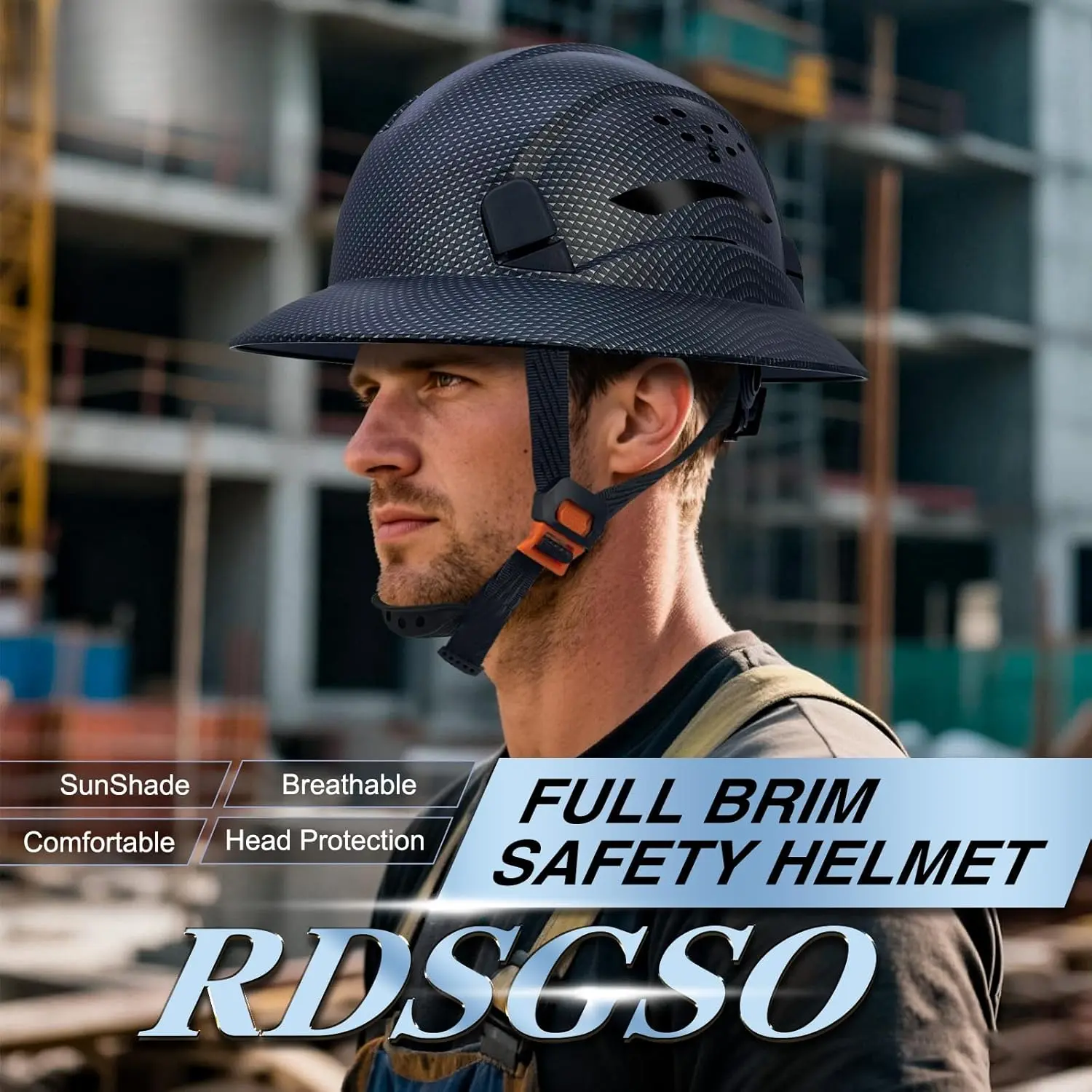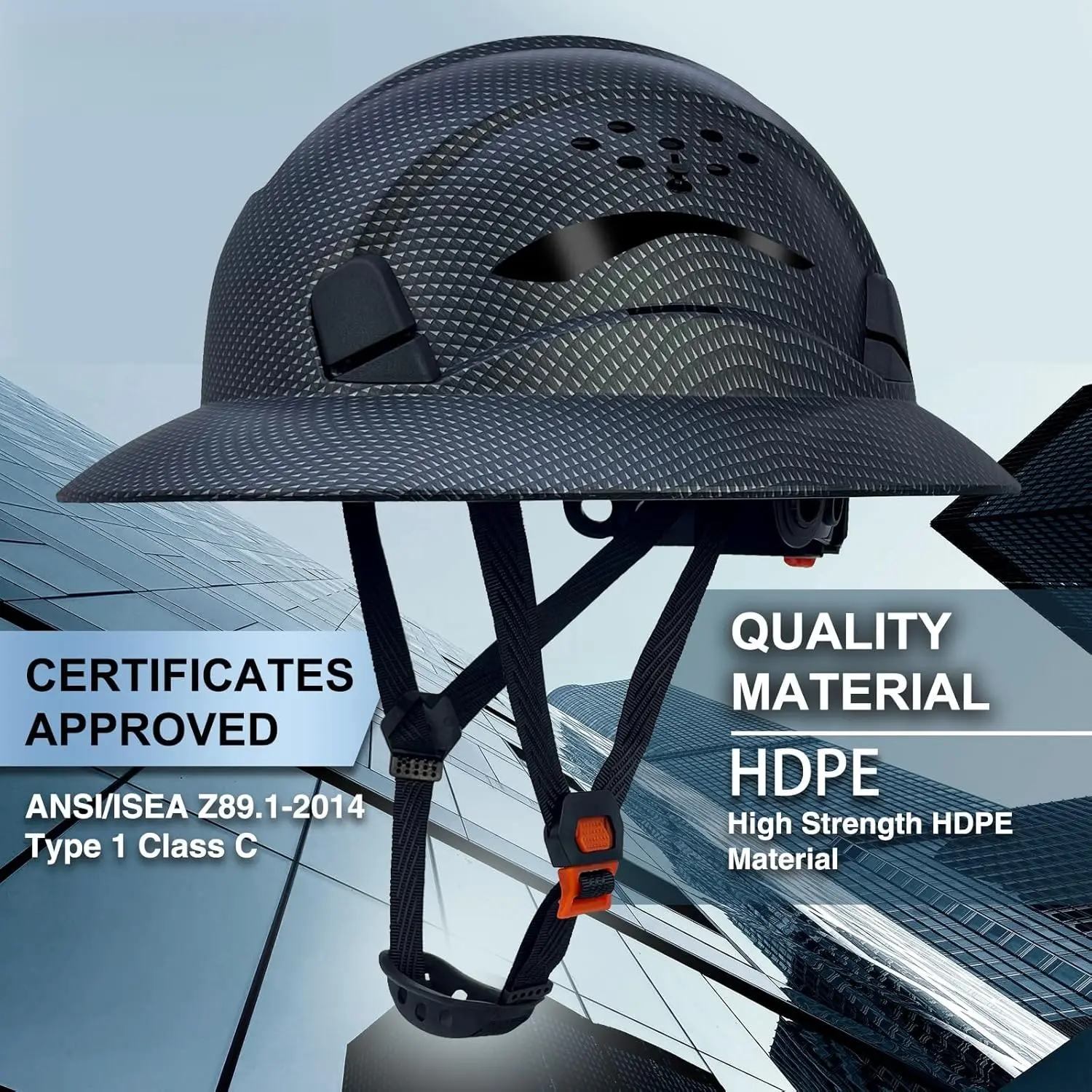 Full Brim Hard Hat Vented Construction Safety Helmet Industrial Work Hardhat for Workers 6 Point Adjustable Ratchet Suspension Breathable Head Protection