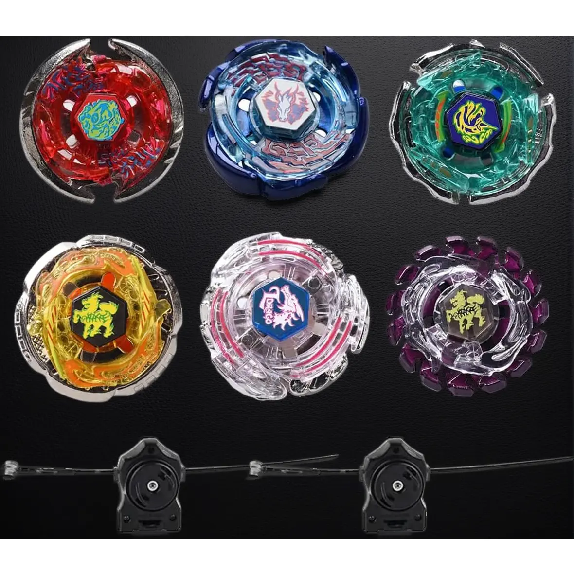 6 Pack Bey Burst Metal Fusion Battle Tops Starter Set with Stickers and Dual Launchers