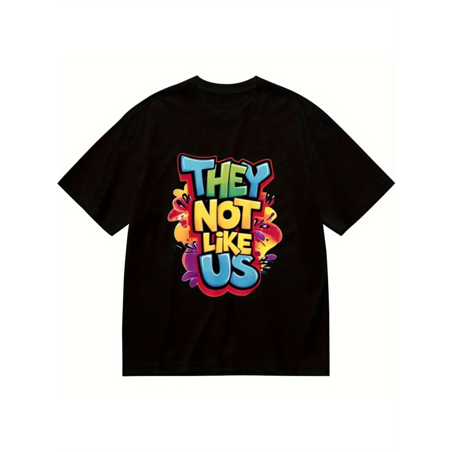 Youngsters' "They Not Like Us" Graphic Cotton T-Shirt - Vibrant Colorful Lettering, Soft & Comfortable Regular Fit Short Sleeve Tee for Boys & Girls, Black with Multicolor Geometric Design, Casual Round Neck All-Season Top, Teen Tshirts for Girls (3-13Y)