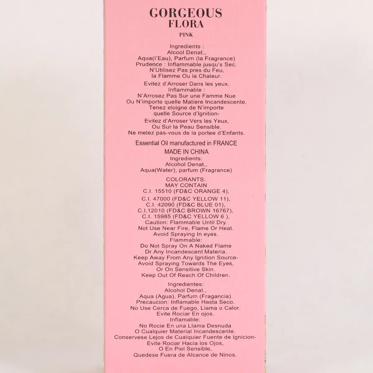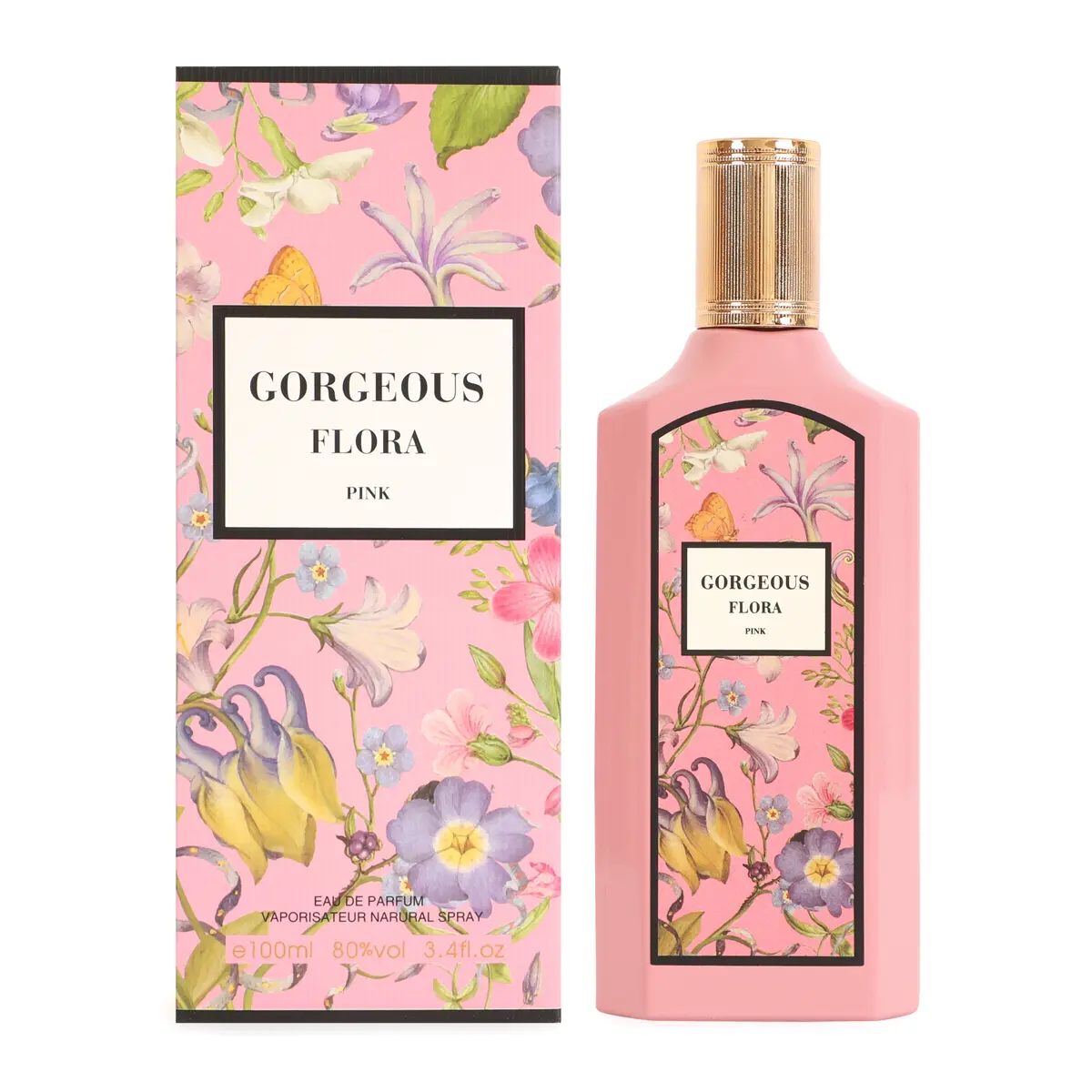 Gorgeous Flora Pink Eau De Parfum Vaporisateur Natural Spray for Women 100ml 3.4fl.oz. Subtle Captivating Scent Daily Use