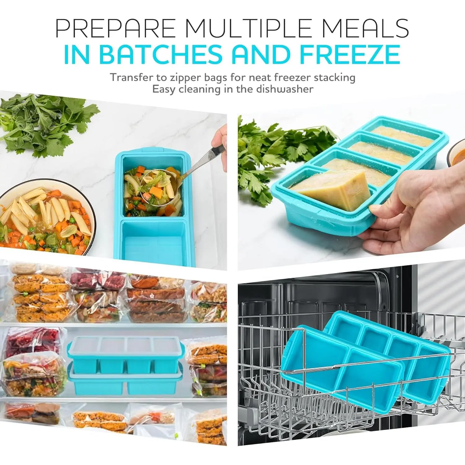 Silicone Freezer Tray with Lid – Soup Freezer Container Mold, Large Ice Cube Tray Set Makes 1-Cup & 2-Cup Portions, Perfect for Meal Prep, Oven & Dishwasher Safe – BPA-Free