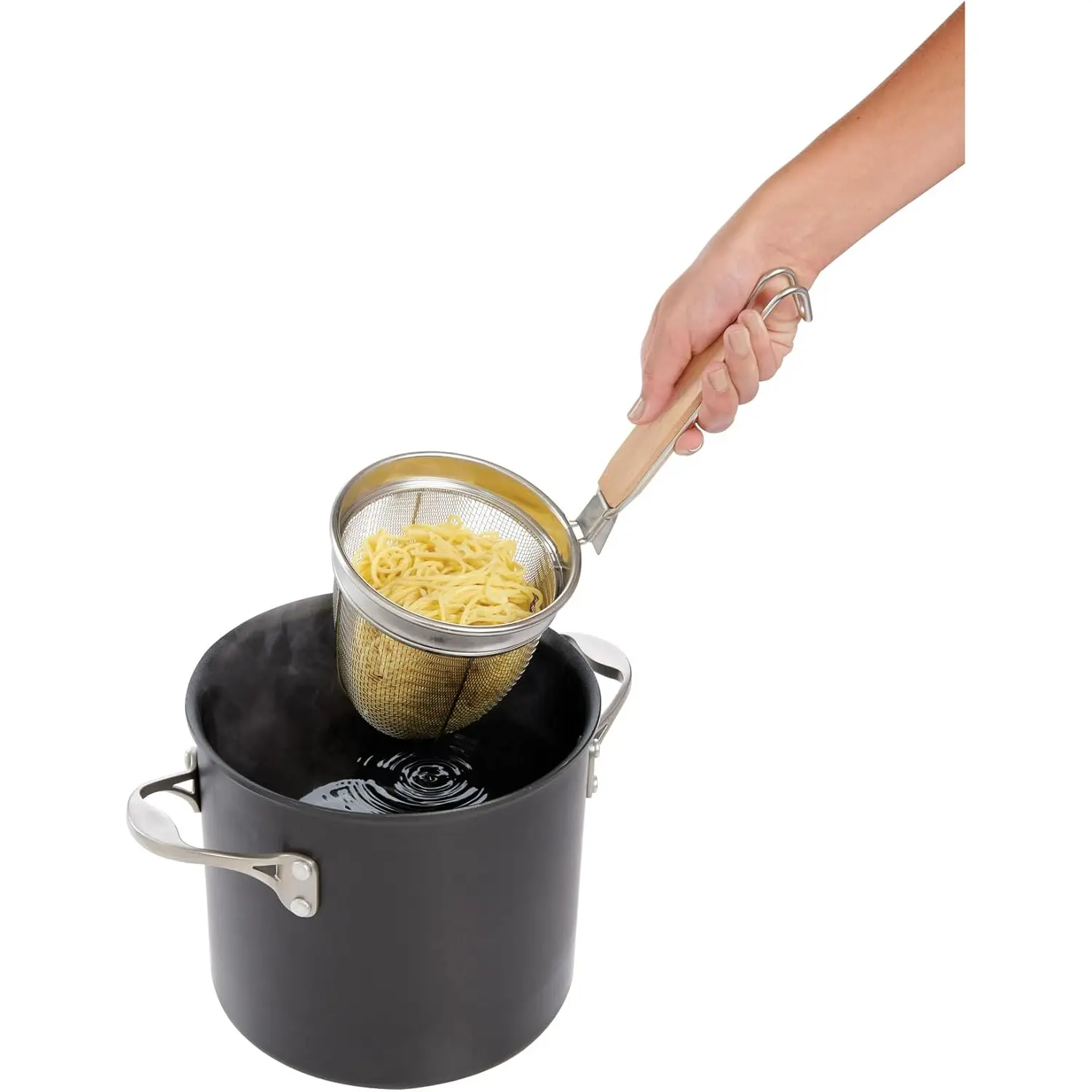 Stainless Steel Mesh Strainer – 6 Inch Fine Mesh Spider Skimmer, Heat Resistant Deep Fryer Strainer for Frying, Pasta, Vegetables, Hot Oil Drain – Dishwasher Safe