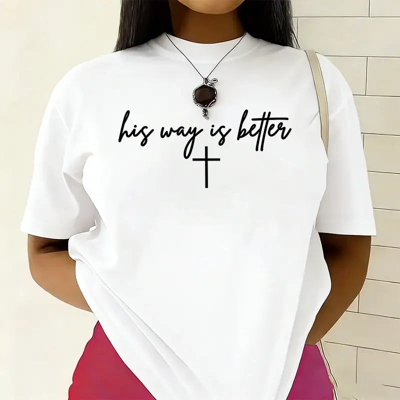 His Way Is Better' Cross Minimalist Print T-shirt Christian Faith Style Casual Top