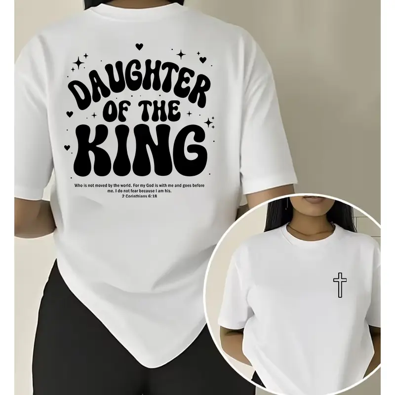 Daughter Of The King' 2 Corinthians 6:18 Double-sided Print T-shirt Christian Women's Faith Style Casual Top