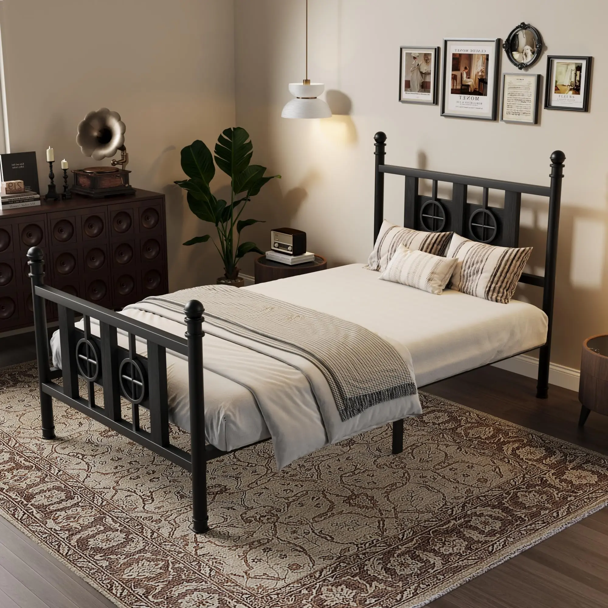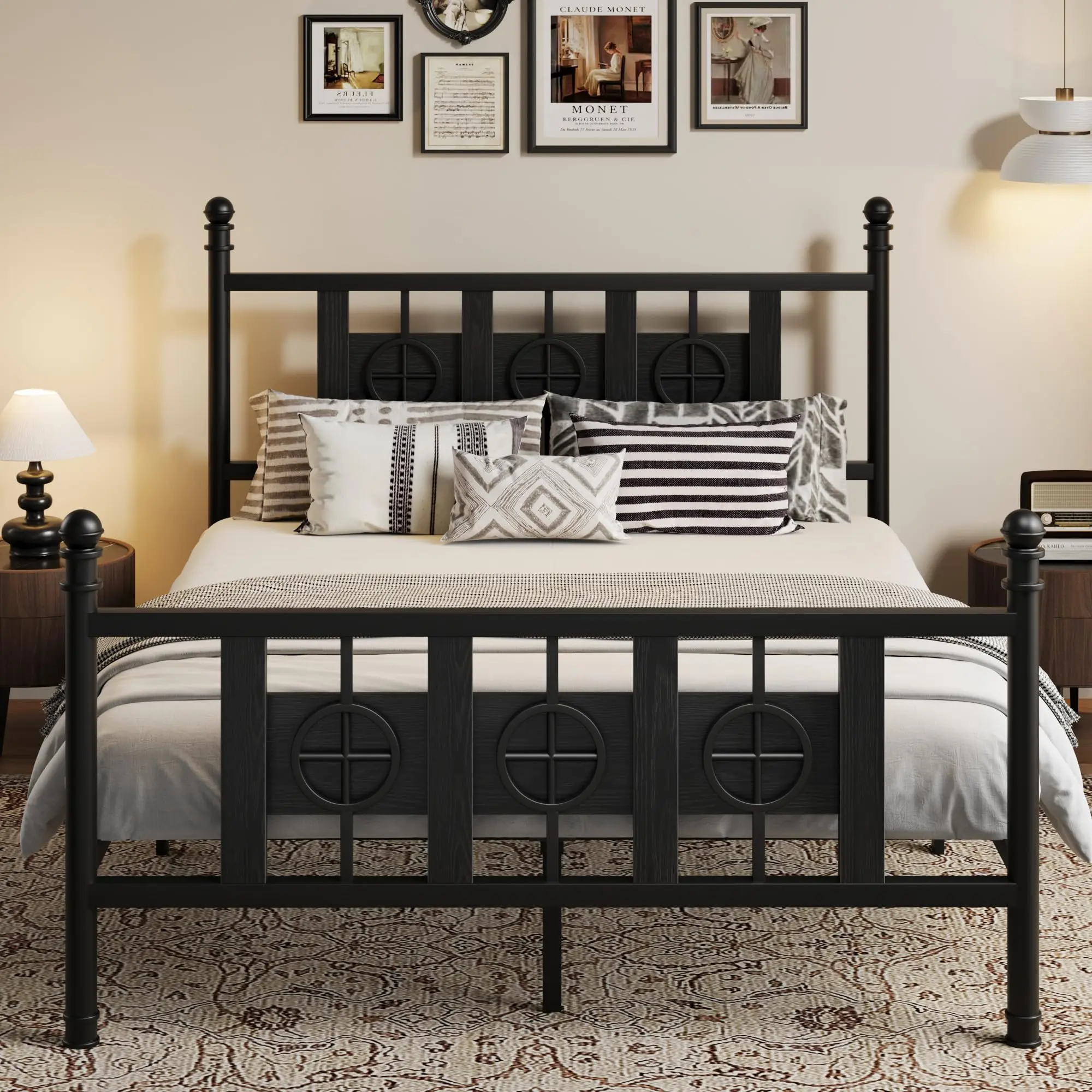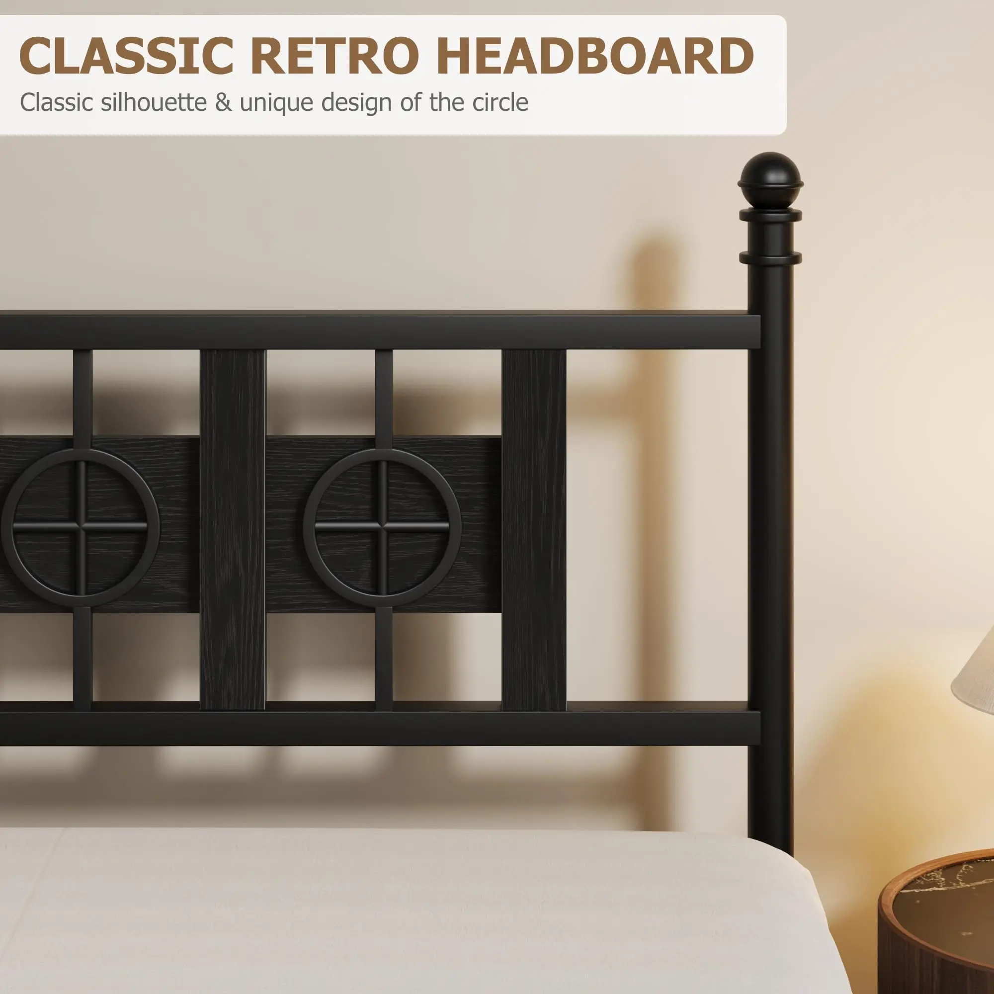 Garvee Sturdy Metal Bed Frame with Vintage Circular Design, Headboard and Footboard, Spacious Underbed Storage, Noise-Free, Easy Assembly, No Box Spring Needed, Available in Twin to King Sizes