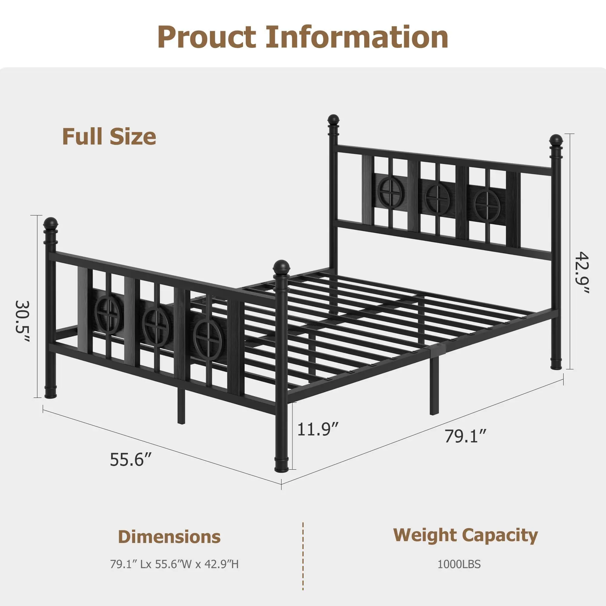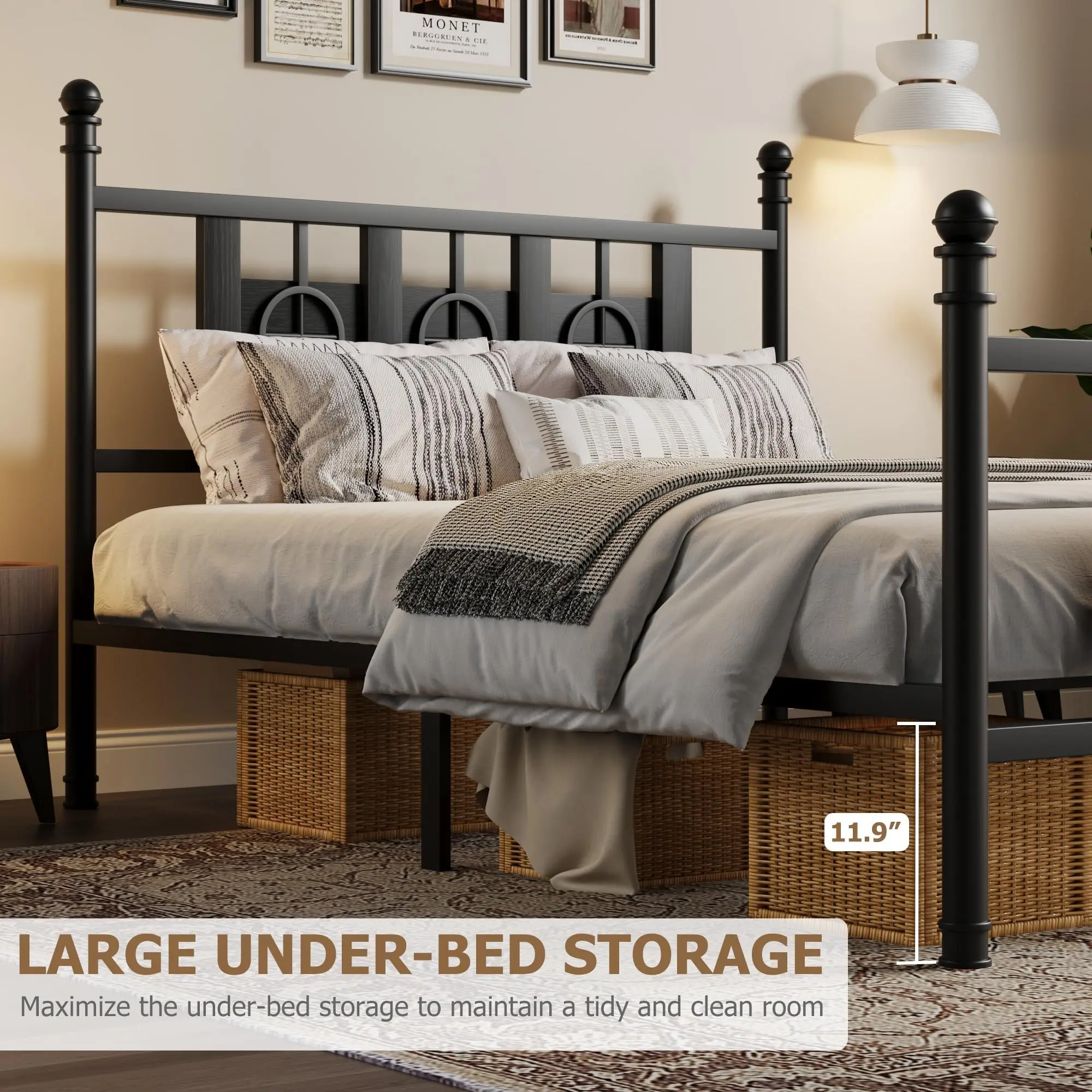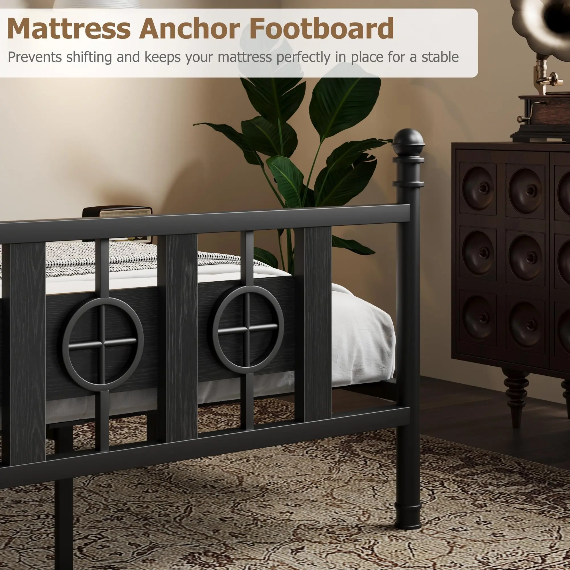 Garvee Sturdy Metal Bed Frame with Vintage Circular Design, Headboard and Footboard, Spacious Underbed Storage, Noise-Free, Easy Assembly, No Box Spring Needed, Available in Twin to King Sizes
