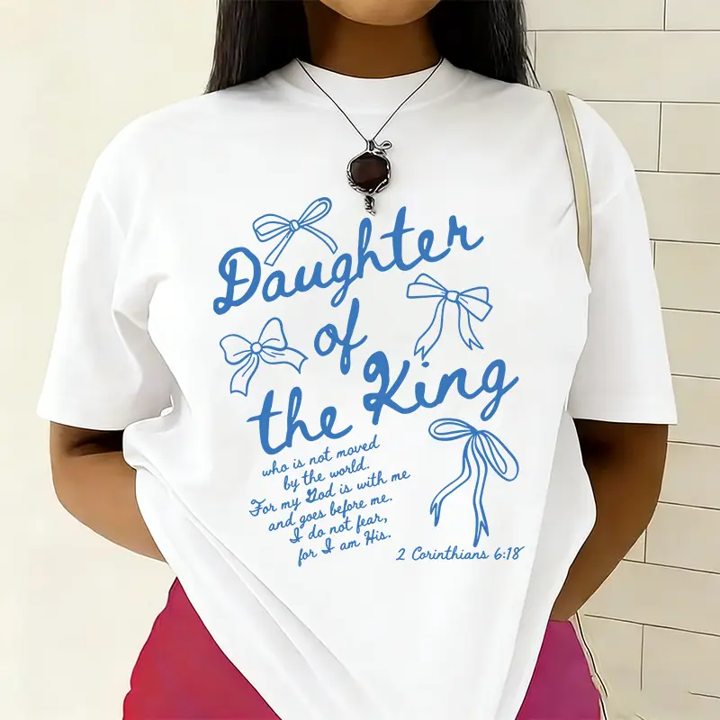 Daughter Of The King' Bow Coquette Print T-shirt Christian Women's Style Casual Top