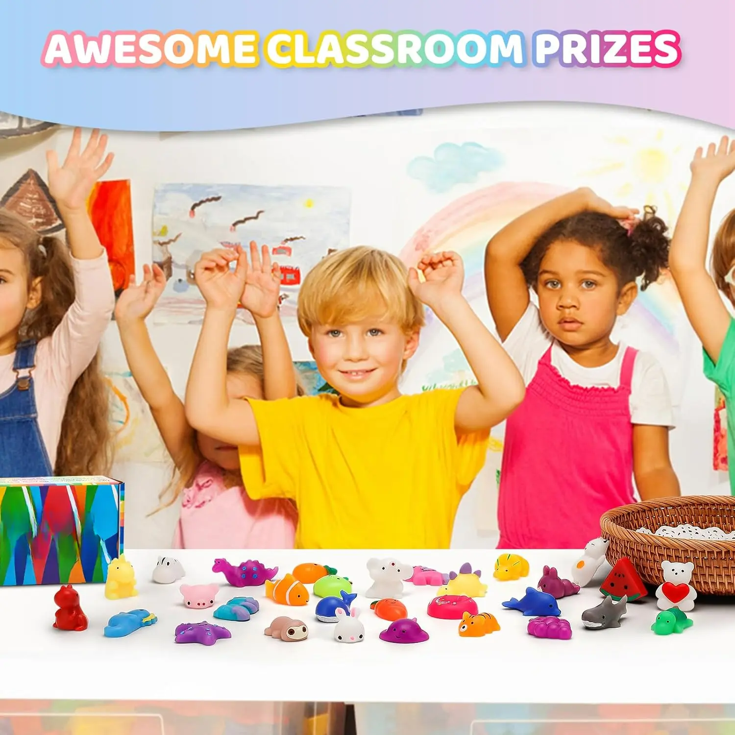 Emotional Support School Supplies Plush by Relatable - Cute Stuffed Animals and Squishy Toys, Fun Gift Ideas For All ages, and Your Favorite Teacher - Includes 5 Plushies with Carrying Basket