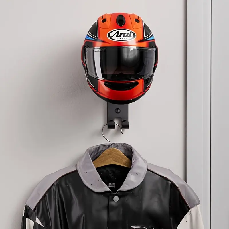 【Wall-Mounted Design】: Save space with this wall-mounted helmet rack, perfect for organizing helmets and accessories.
