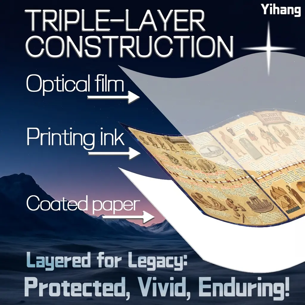 Made with a triple-layer construction that includes optical film, printing ink, and coated paper, this timeline is designed for a polished and visually striking presentation. The layered structure helps protect the graphics while giving the scroll a premium look for display, study, or gifting.
