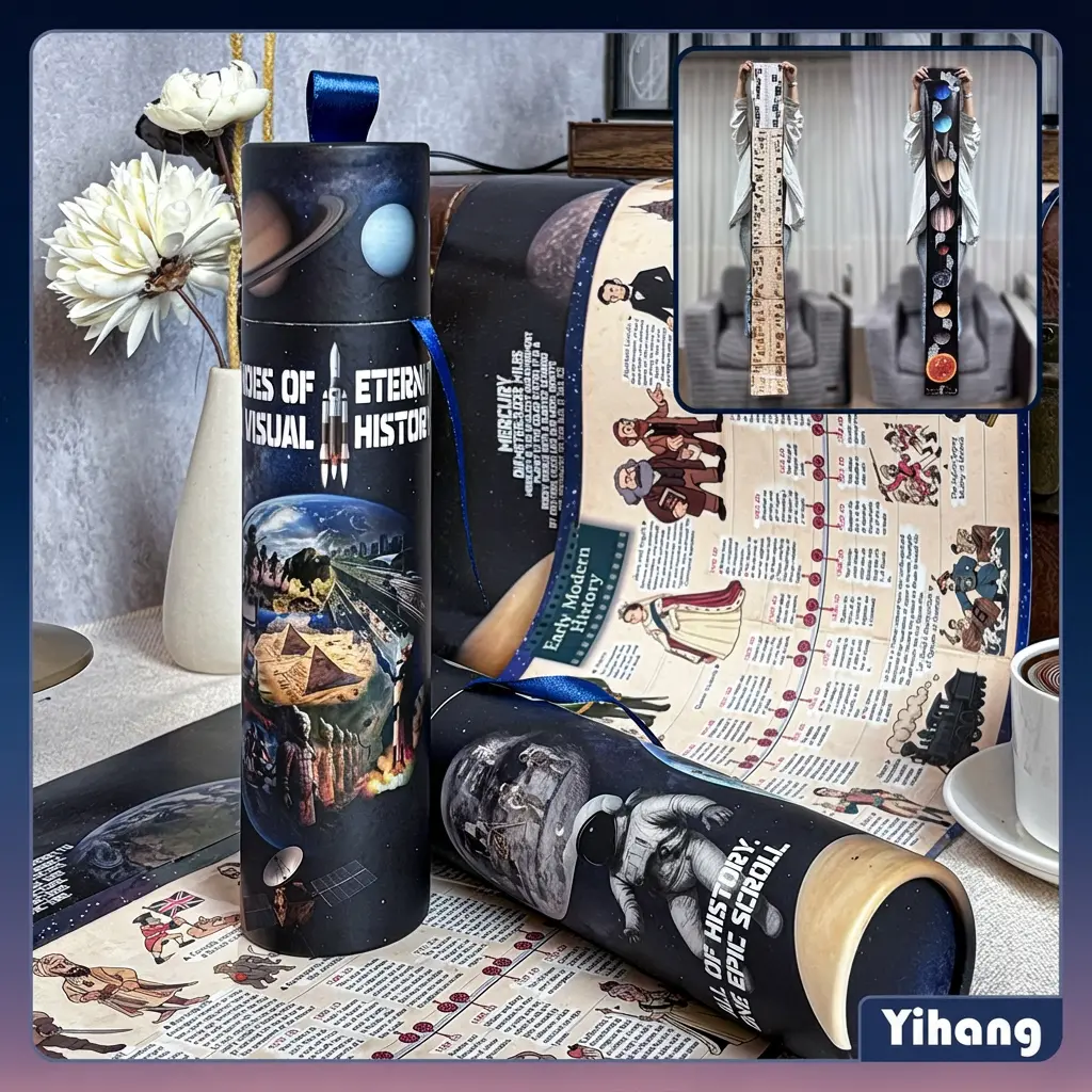 Thoughtfully designed for everyday use, it comes in a portable pull-tab scroll format and includes extra double-sided tape for wall mounting or hanging display. The back side also features a panoramic guide to major solar system bodies, making it a unique gift for students, teachers, homeschool families, and history lovers.