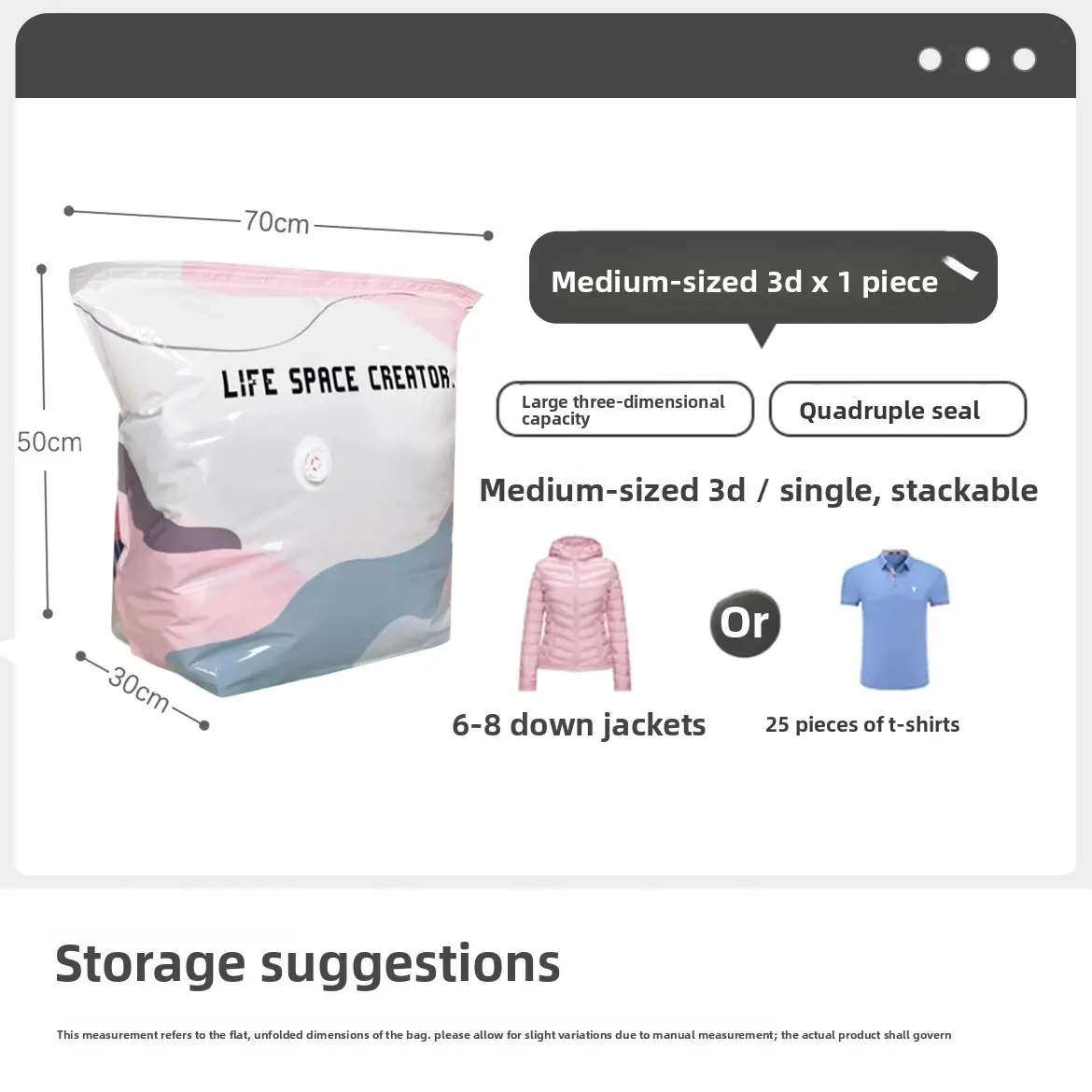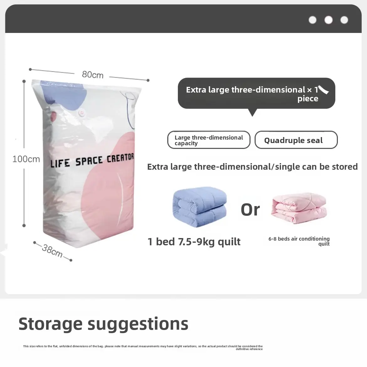 Vacuum Compression Bag No Air Extractor Needed 3D Thickened Large Capacity Clothes Quilts Storage Sealing Bag
