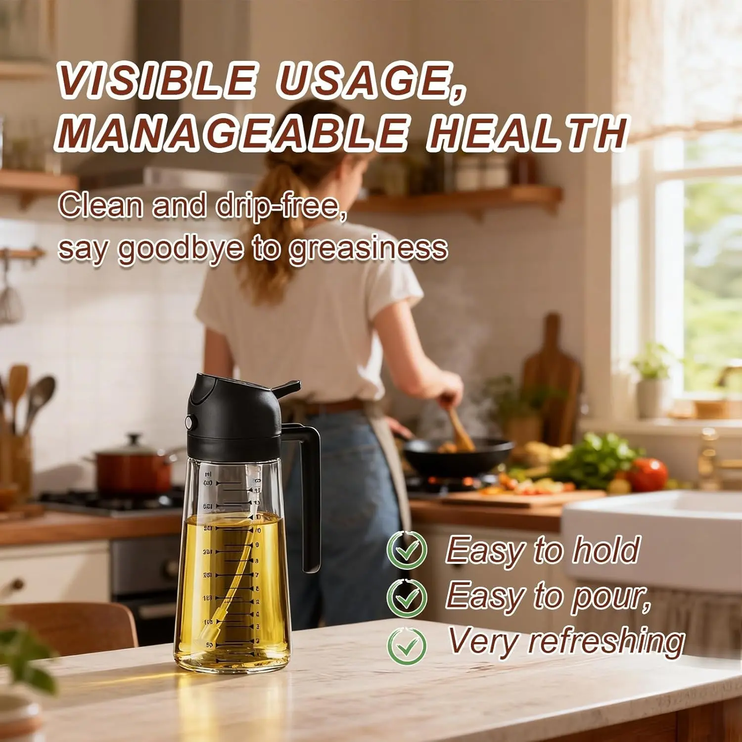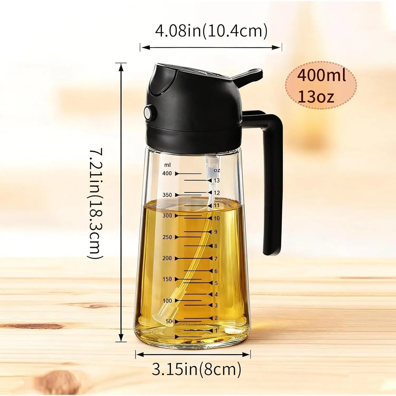 16oz 2-in-1 Glass Olive Oil Sprayer & Dispenser, Food-Grade Oil Mister for Air Fryer, Cooking, Salad & BBQ (Black)