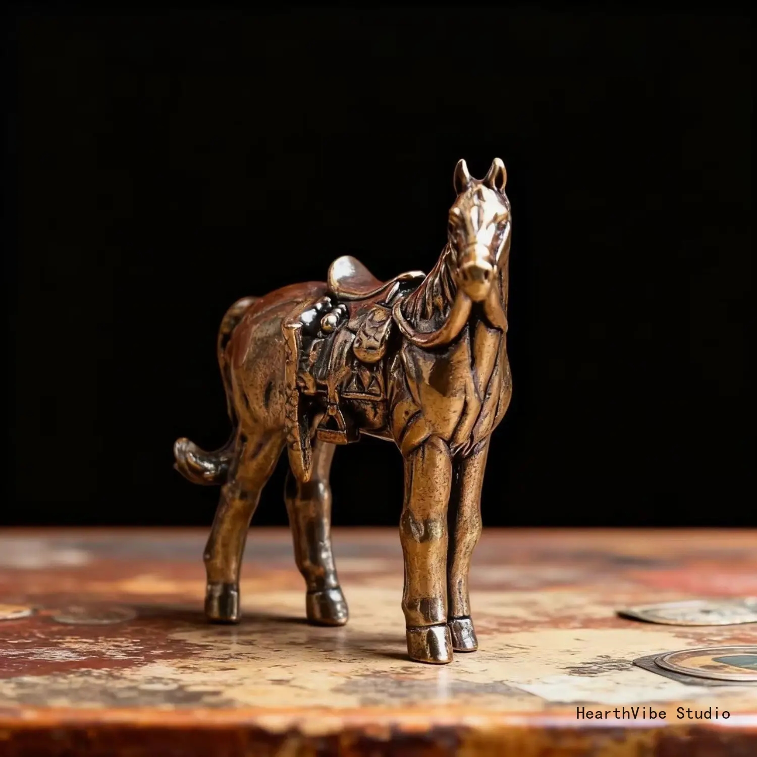 Brass Horse Figurine — Office Desk Ornament, Tea Pet, and Decorative Bronze Art Piece