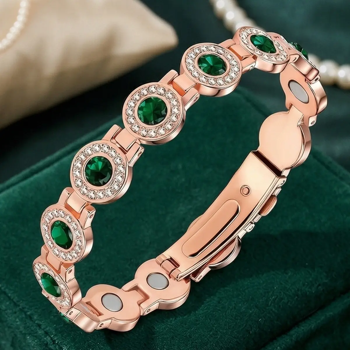 Magnetic Copper Bracelets for Women, 4X Strength 3800 Gauss Magnets, Adjustable Bracelet with Secure Clasp and Premium Multi-Facet Crystal Inlays