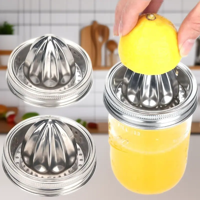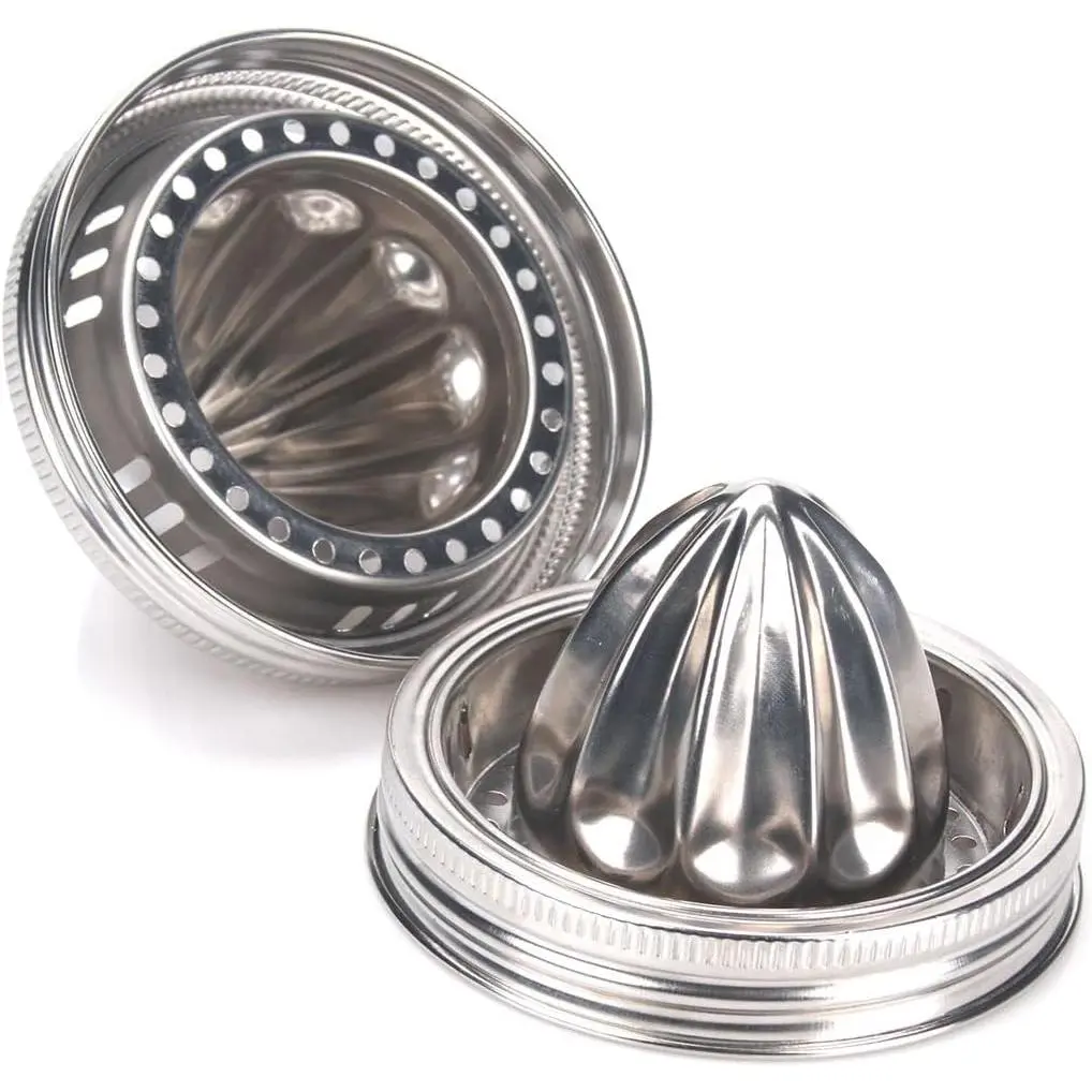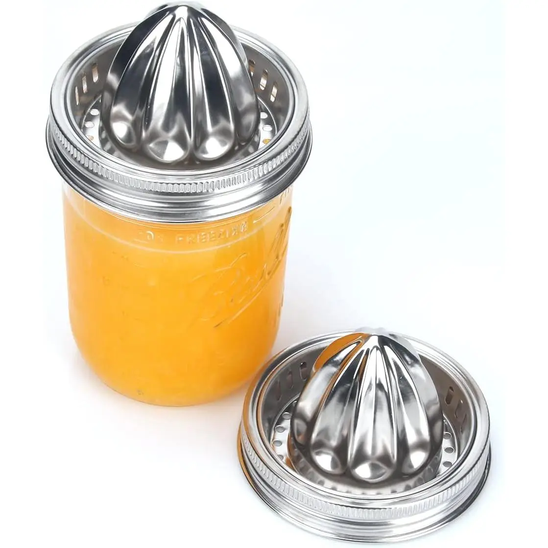 2-Pack Stainless Steel Mason Jar Juicer Lids, Manual Citrus Reamer for Wide Mouth Mason Jars, Lemon Juicer Attachment