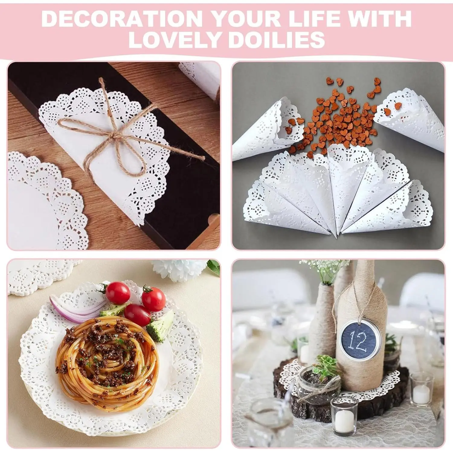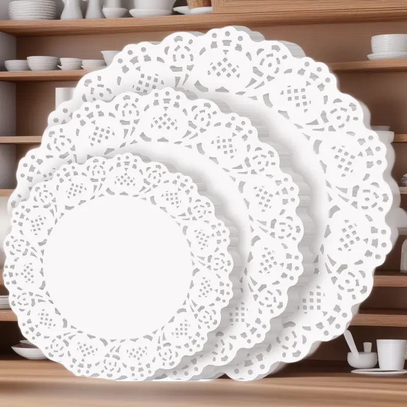 Disposable Paper Doilies, 150 Pack Assorted Sizes (6.5in / 8.5in / 10.5in), White Lace Placemats for Dessert Trays, Food Display, Parties, Crafts & Wedding Decor