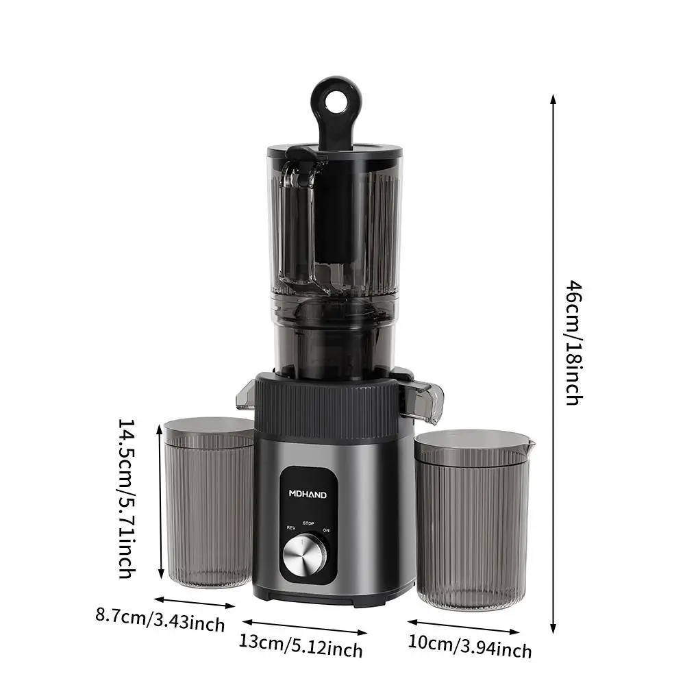·200W Quiet & Powerful DC Motor – Equipped with a premium DC motor delivering strong torque at only 65 dB, ideal for cold-press juicing with minimal noise. Designed for long-lasting performance and stable operation.