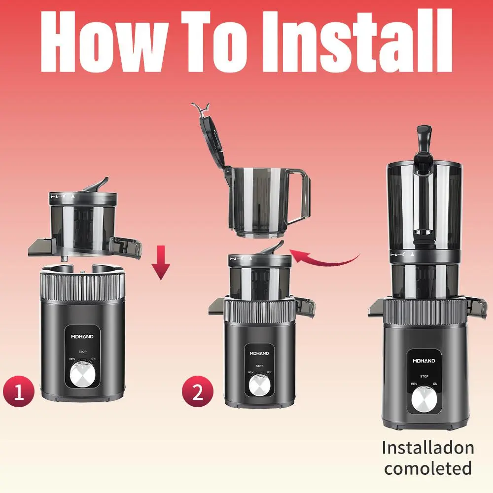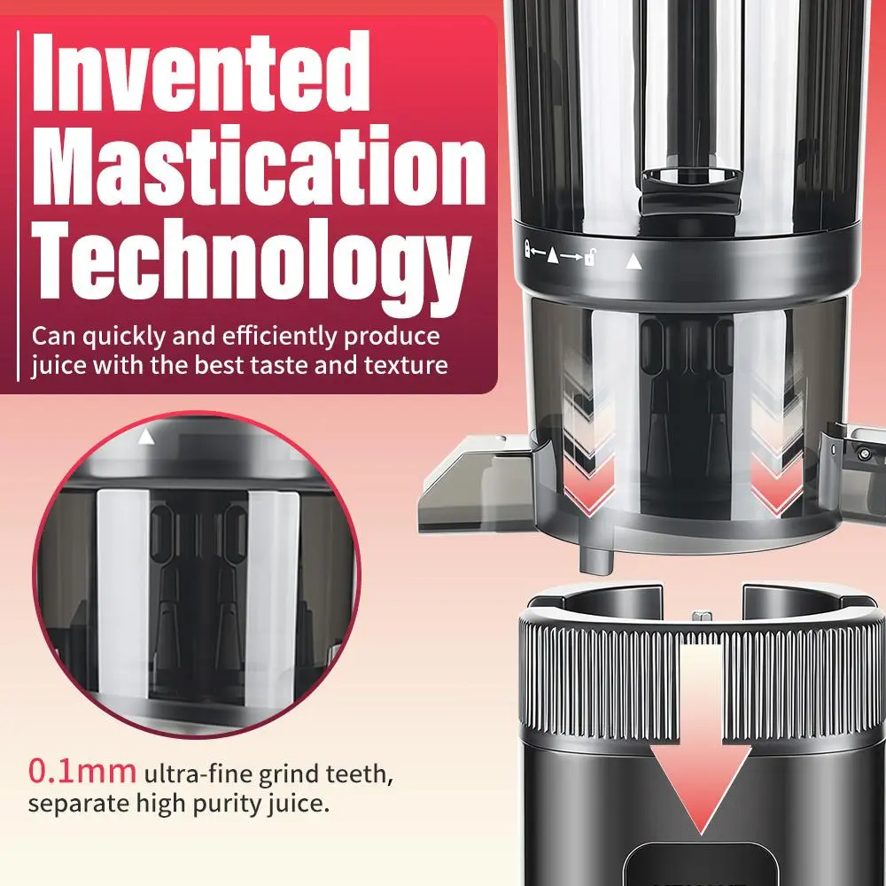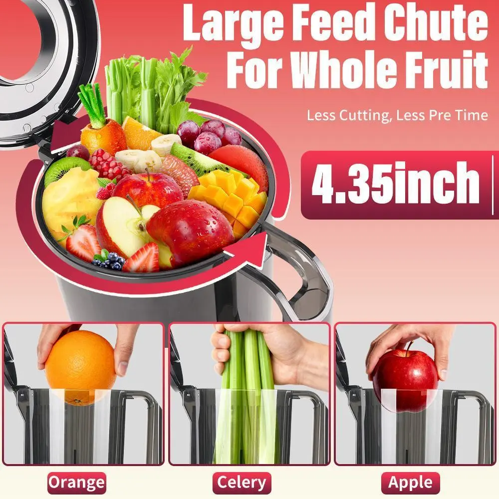 ·Extra-Large 112mm Feed Chute – The upgraded 4.35" wide feeding chute allows whole apples and large fruits to be inserted without pre-cutting, reducing prep time and ensuring efficient juicing.