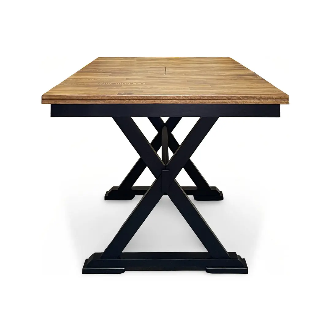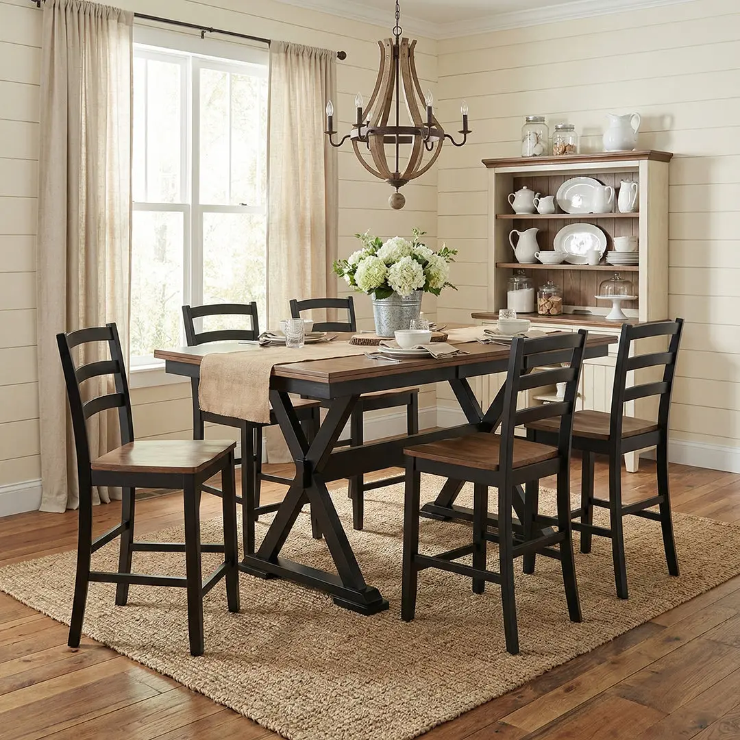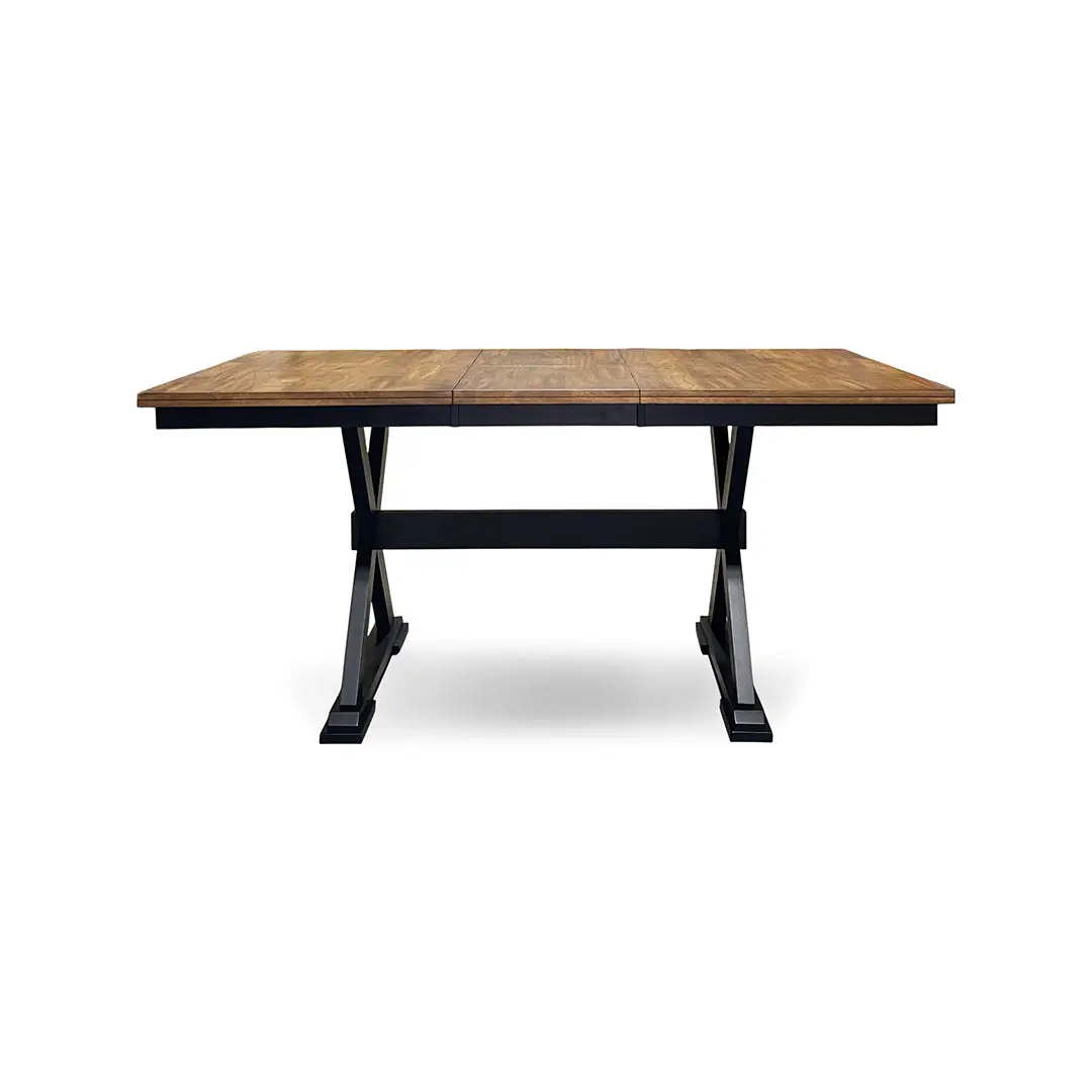 The Wildenauer Counter Table brings modern farmhouse character to the dining room with a striking two-tone finish and a clean, inviting look. Its butcher block veneer pattern top adds rich visual texture, while the bold X-base design gives the table a sturdy presence with country chic appeal. Designed at counter height, it comfortably seats 6 to 8 and includes a self-storing butterfly leaf that makes it easy to expand for guests and tuck away when not in use. Rated at a “Good” quality level, the Wildenauer Counter Table is a smart choice for everything from casual meals to weekend gatherings.