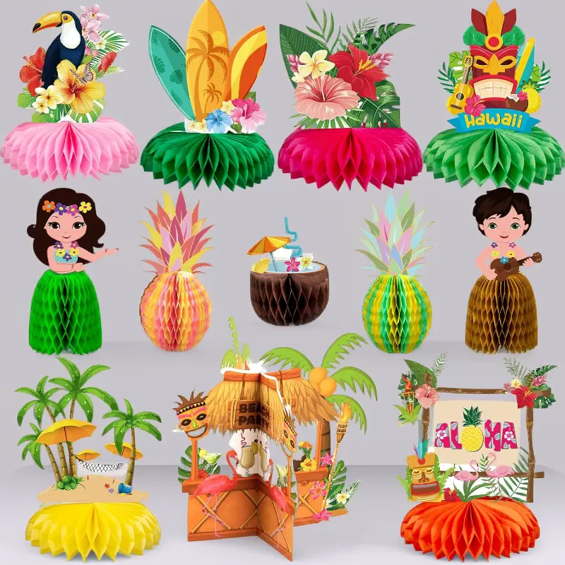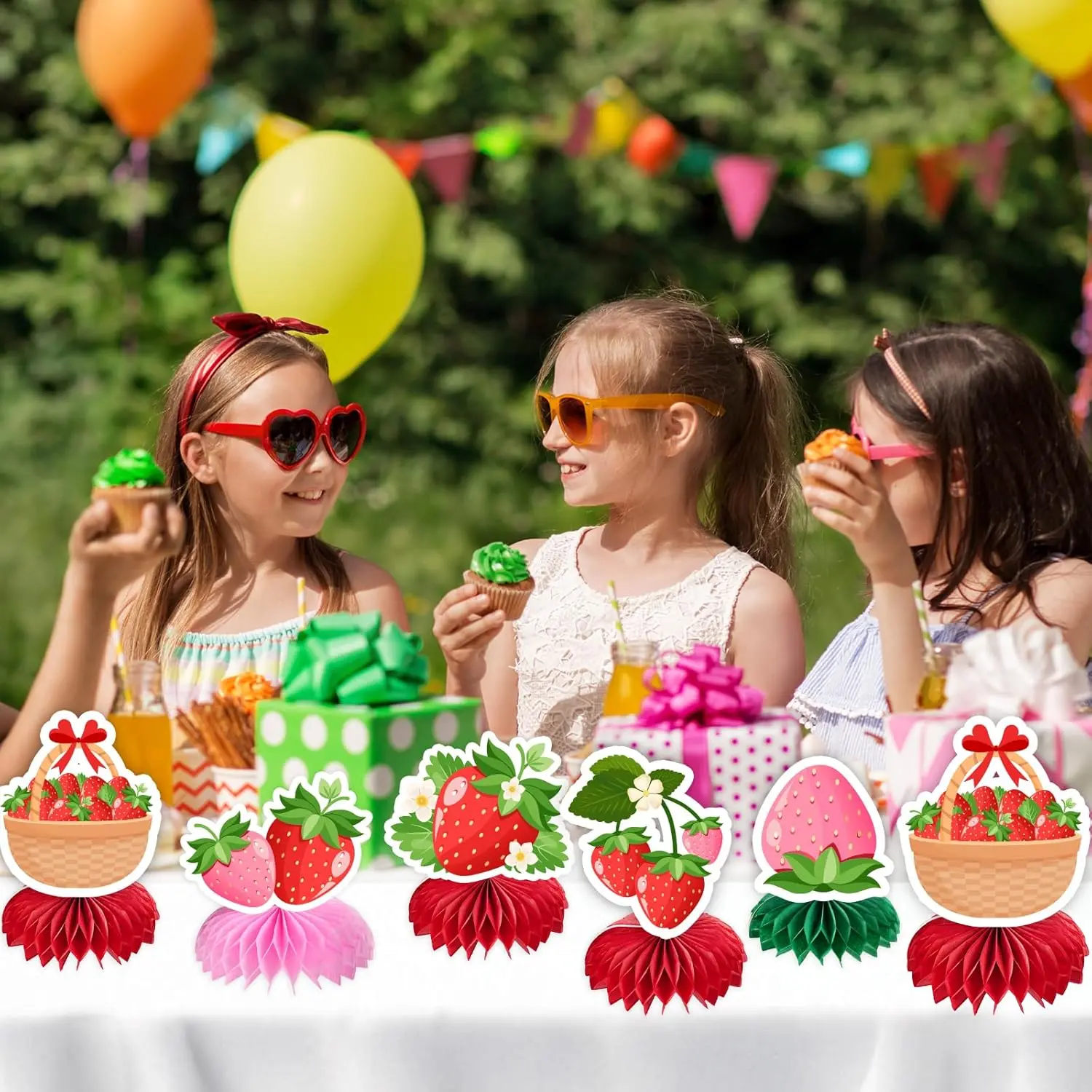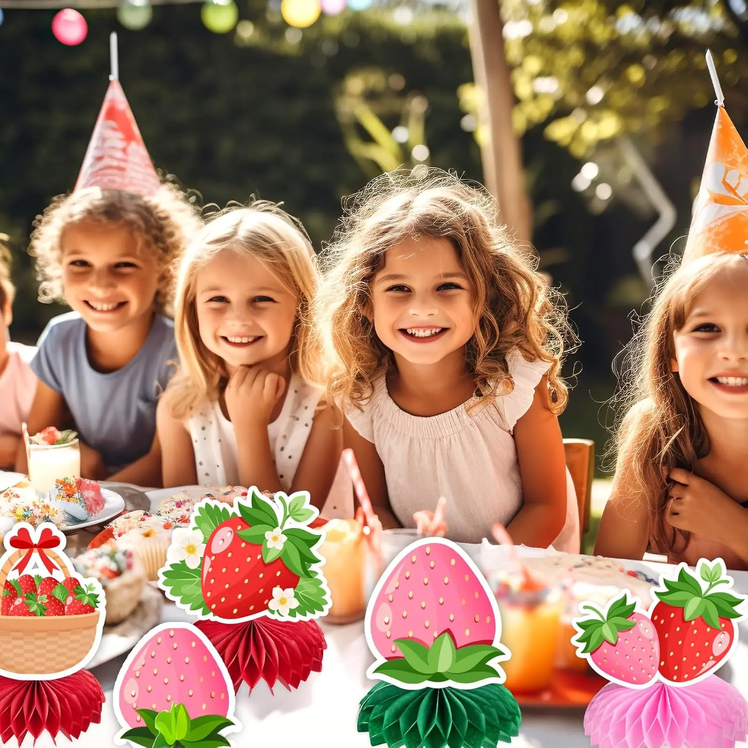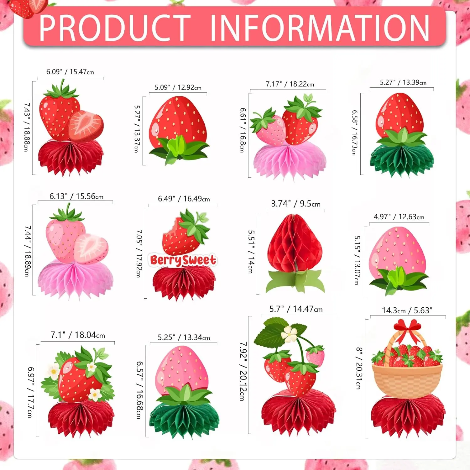 Sweet Strawberry Party Decorations, 12 Pcs Red & Pink Strawberry Honeycomb Centerpieces Table Toppers for Spring Summer Strawberry Theme Party, Birthday & Baby Shower Supplies