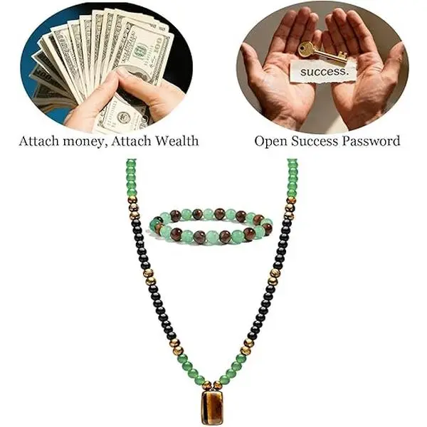 Symbol of Prosperity: This powerful wealth necklace and bracelet set serves as a constant reminder to stay focused, proactive, and open to embracing wealth and opportunity.