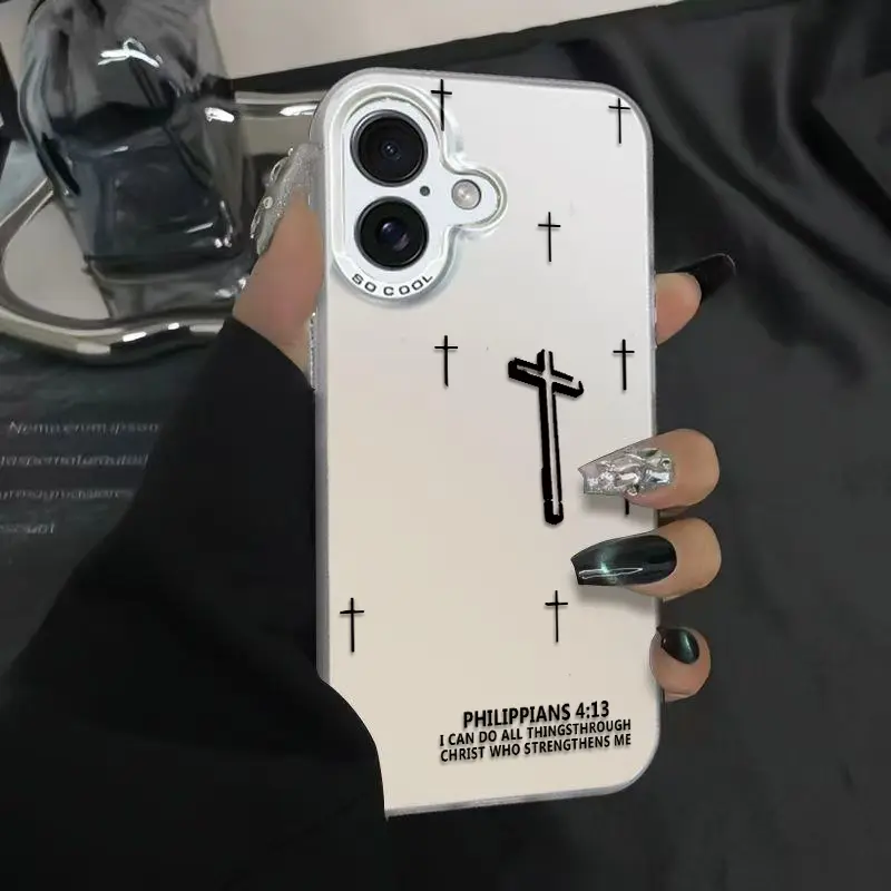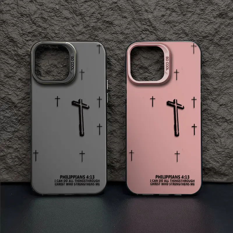 Powerful Cross Design Patterns Phone Case With The Life-Changing Philippians 4:13 Verse Durable Hard Acrylic Back Case With An Anti-Yellowing Coating Made From High-Quality For iPhone 17.16.15.14.13.12.11.X.XS.XSMAX.XR.8.7
