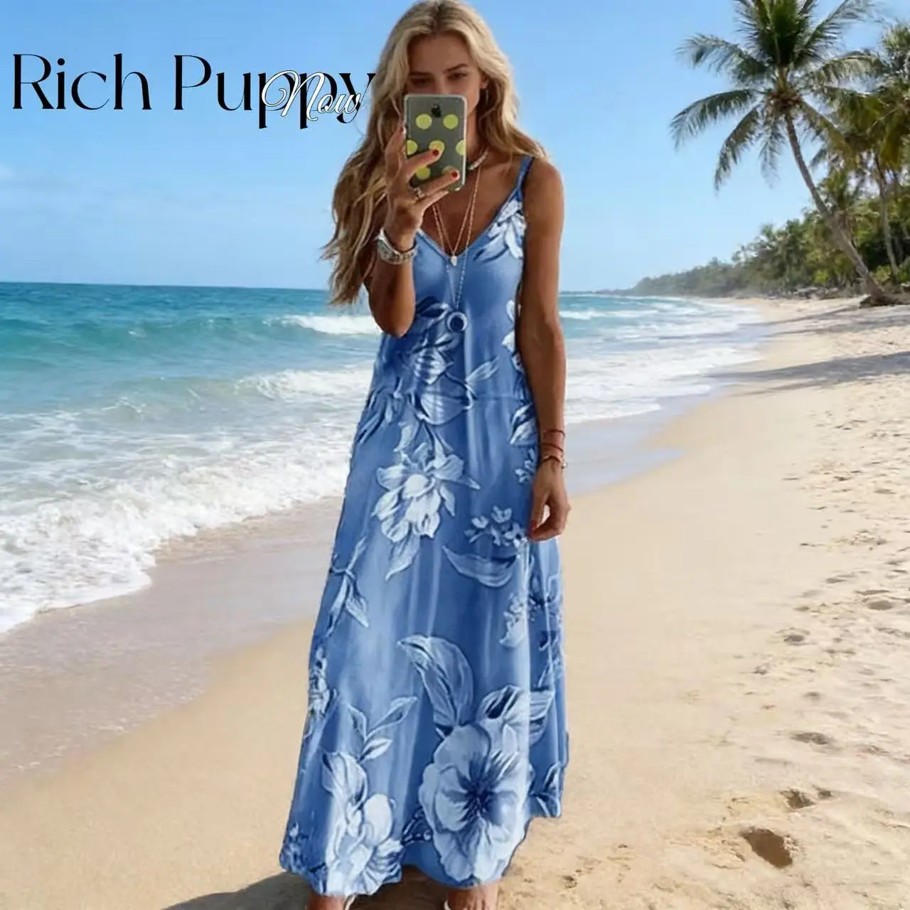 Dokotoo Floral Print Maxi Dress for Women - Comfortable & Elegant High Waist A-Line Silhouette Casual Chic Fashionable 100% Polyester Fabric Boho Style Summer Dress