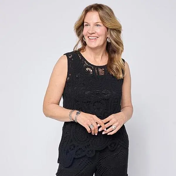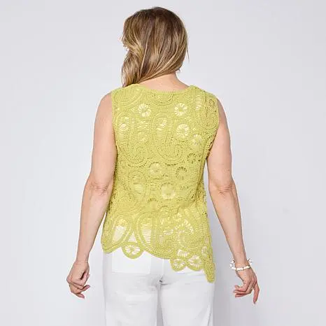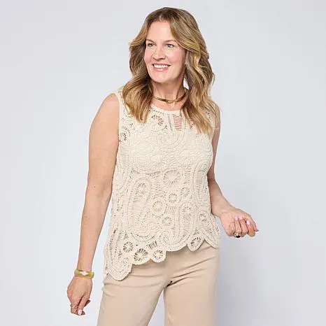 Grey by Jhoan Sebastian Grey Sleeveless Asymmetric Crochet Top This sleeveless crochet top features a charming asymmetrical hem that adds a playful twist to your wardrobe. The detachable scoop neck tank underneath offers versatility and comfort, making it perfect for layering or wearing solo. Whether dressing up or down, this top brings effortless style and a touch of elegance to any outfit.