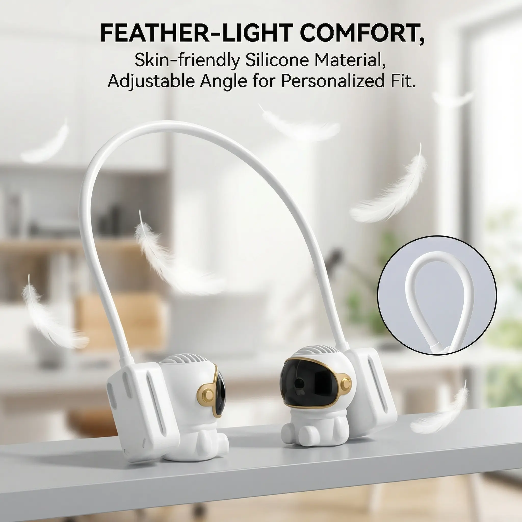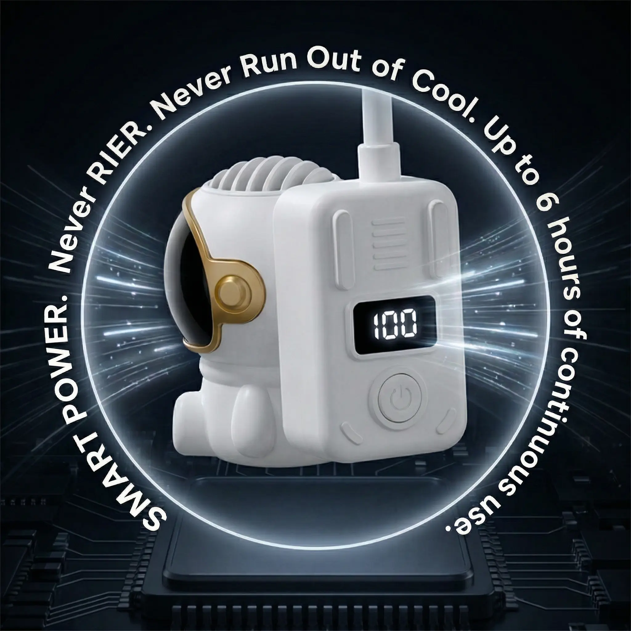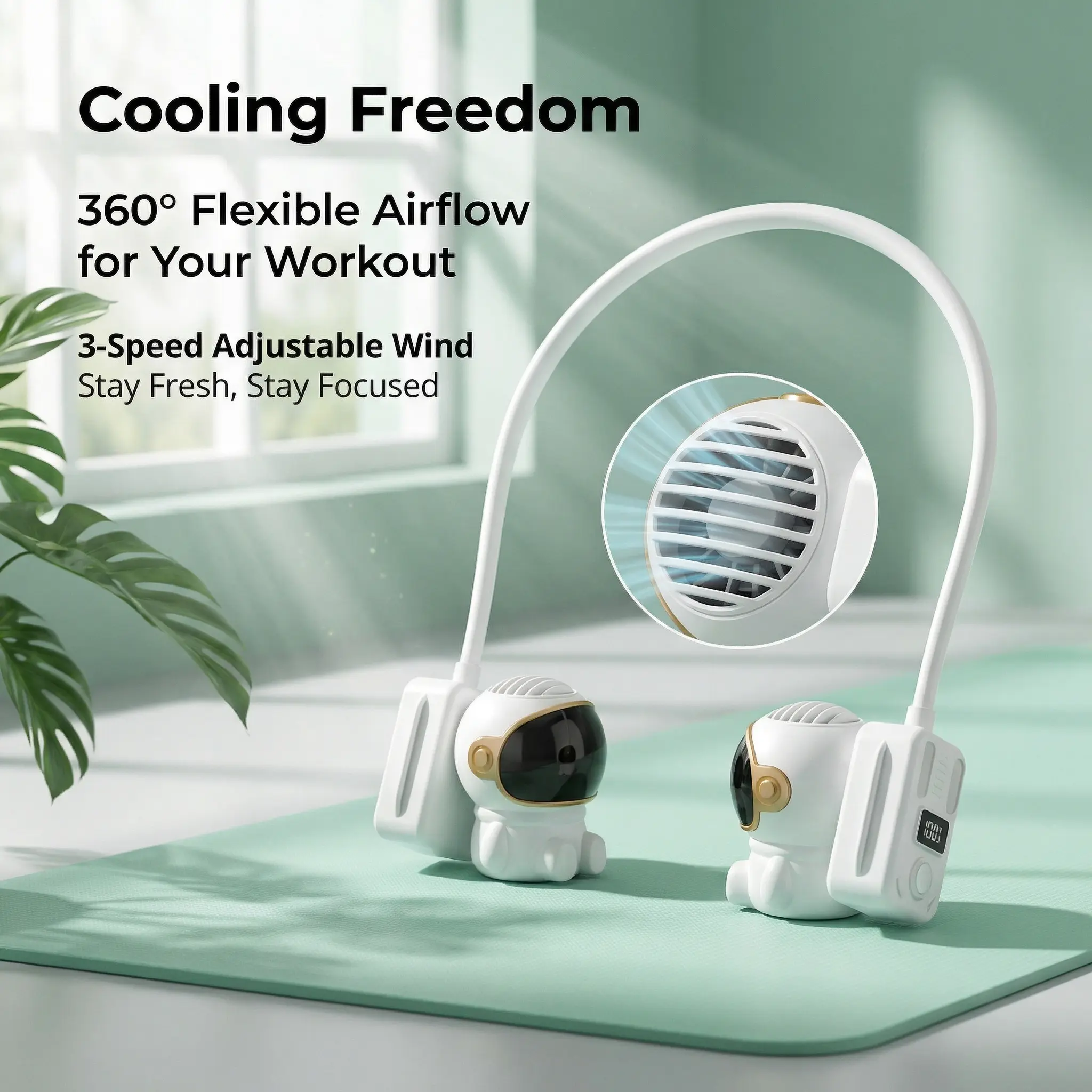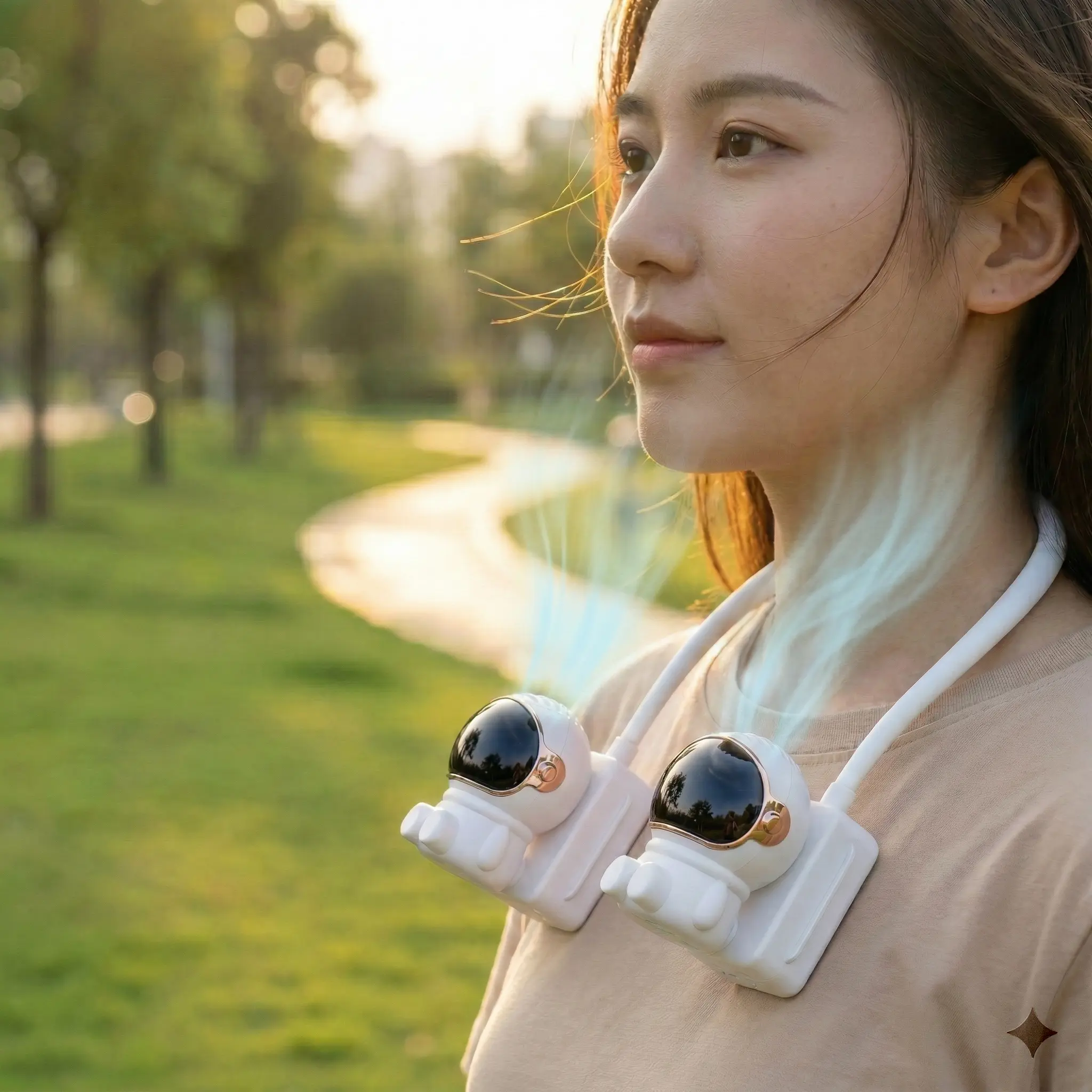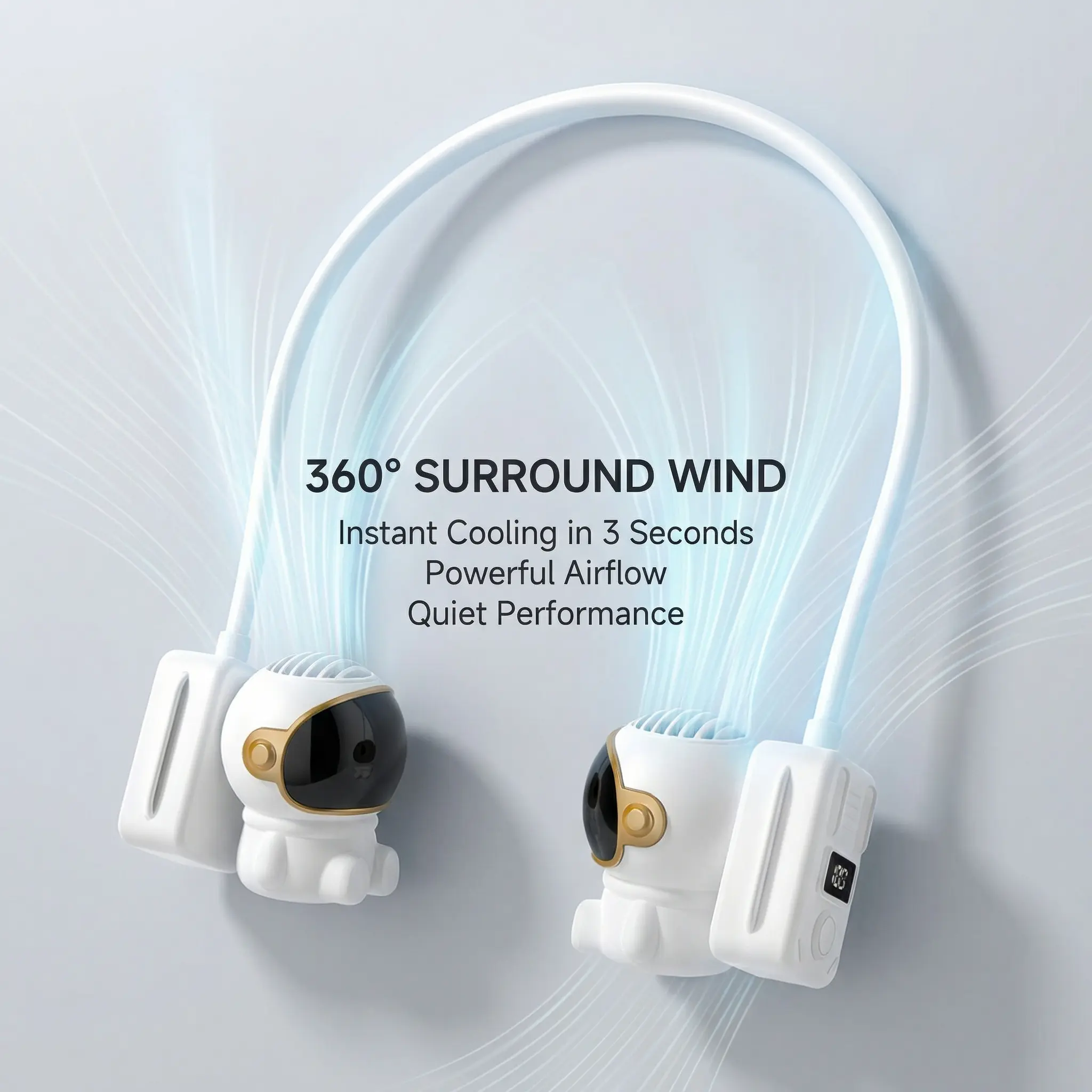 ·【Stylish, Safe & Natural Cooling】This neck-worn personal fan features a trendy astronaut-inspired design, perfect for elevating your summer style. Its user-centric, user-friendly design ensures complete safety for both kids and the elderly. What’s more, its precision-engineered air outlets prevent direct wind from hitting your body, allowing you to enjoy a gentle, natural and soothing cooling breeze all day long.