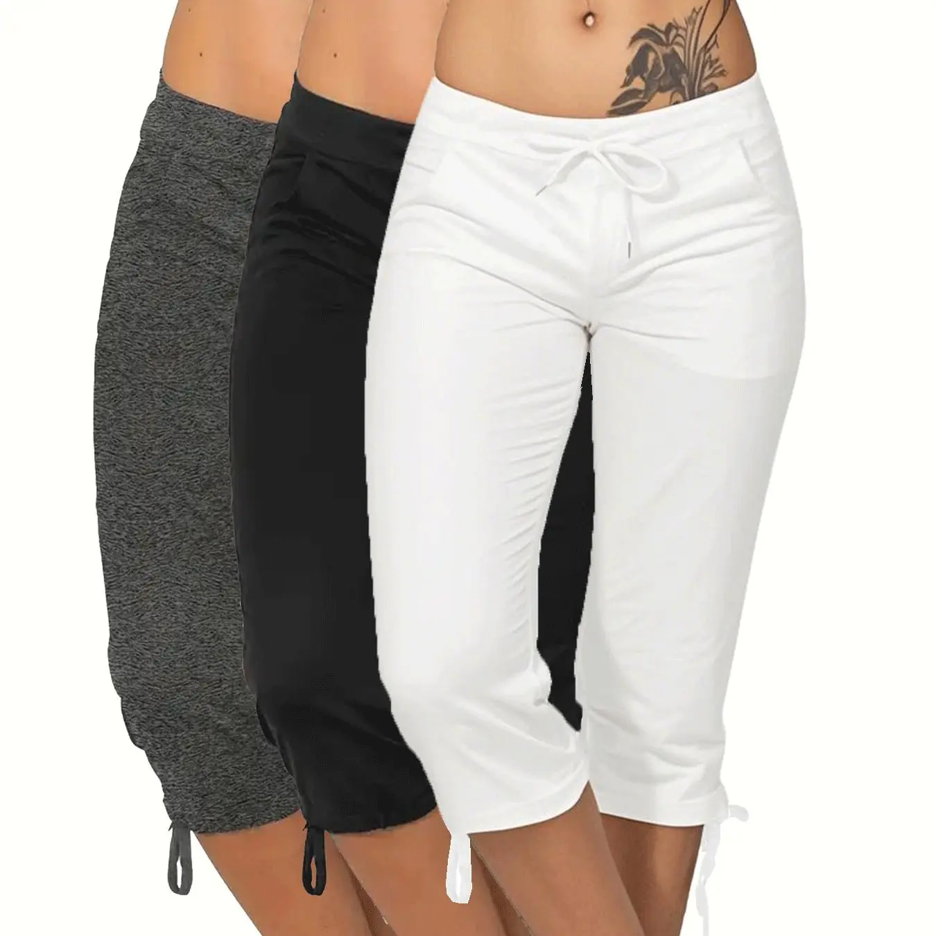 Pack of 3 women’s lightweight capri pants with drawstring waist — casual pants, comfortable and stylish, suitable for everyday wear in spring and summer | Casual pants