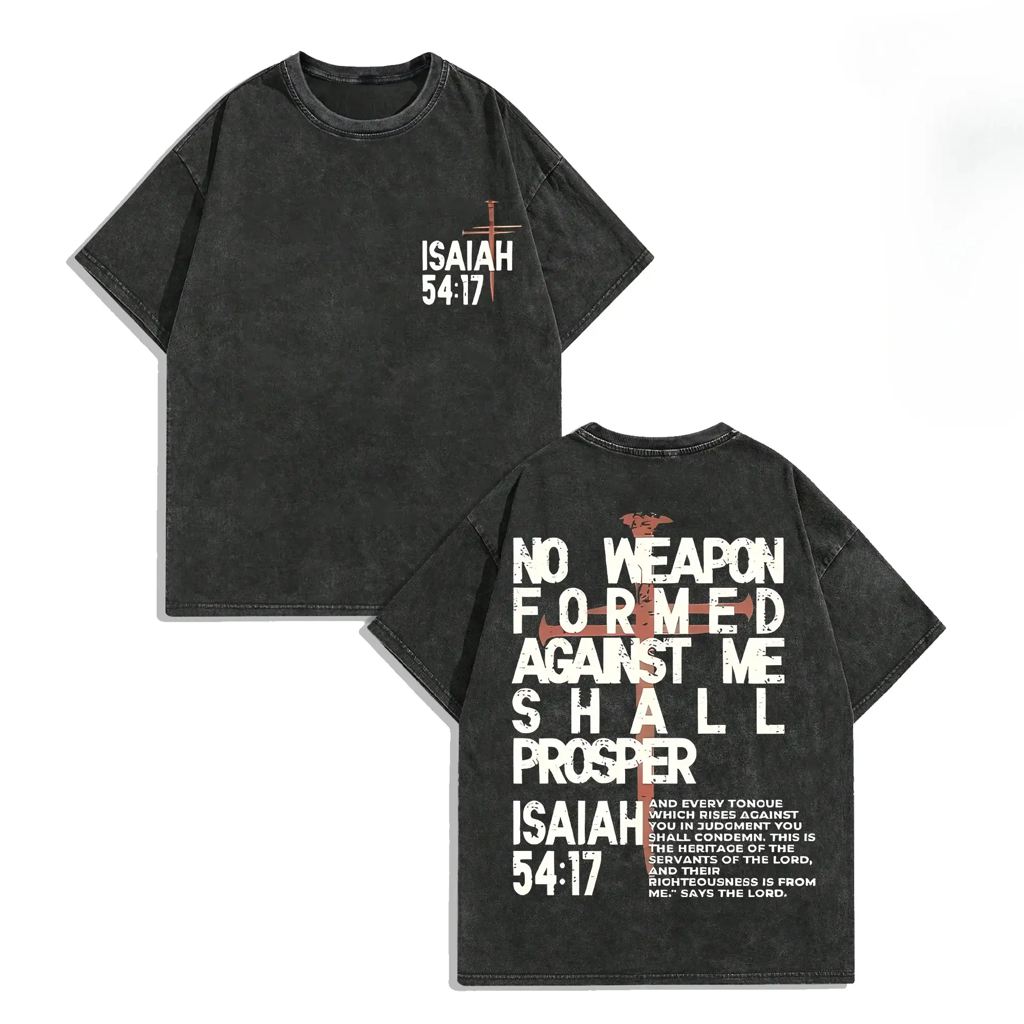 No Weapon Christian Washed T-Shirt, Oversized Faith Tee, Unisex Streetwear Jesus Shirt, Bible Verse Graphic Top for Men and Women Cotton Menswear Basic Dress women's and men's tops TikTokShop Black Friday