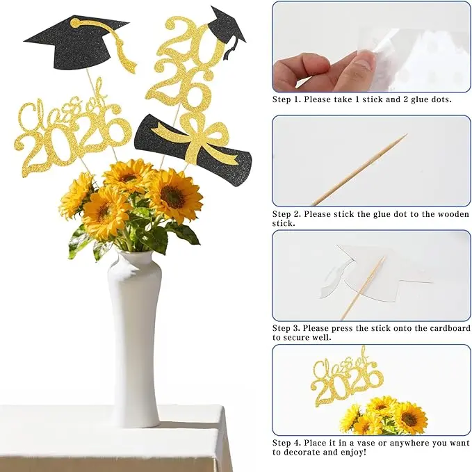 ·16PCS Graduation Centerpiece Sticks: Ideal for creating a cohesive look.