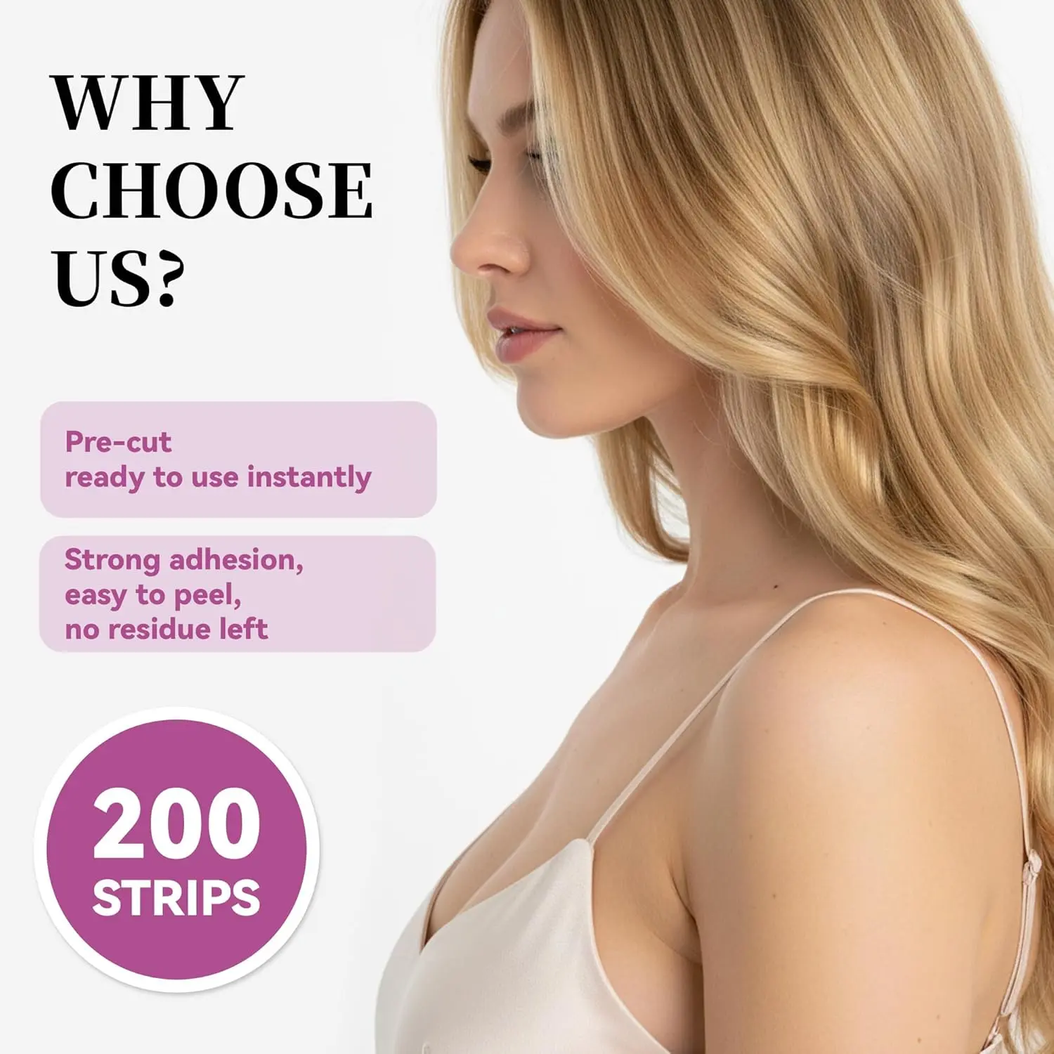 200 Strips Fashion Double-Sided Tape for Clothes, Hypoallergenic Dress Tape for Fabric & Skin, Skin-Friendly Body & Clothing Tape with All-Day Invisible Hold