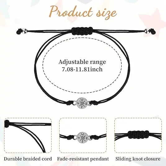 ·Elaborate Workmanship: the compass graduation bracelets are mainly made of quality alloy and wax rope, which is safe and reliable, strong and sturdy, not easy to fade or break or, and waterproof material that ensure a long term use