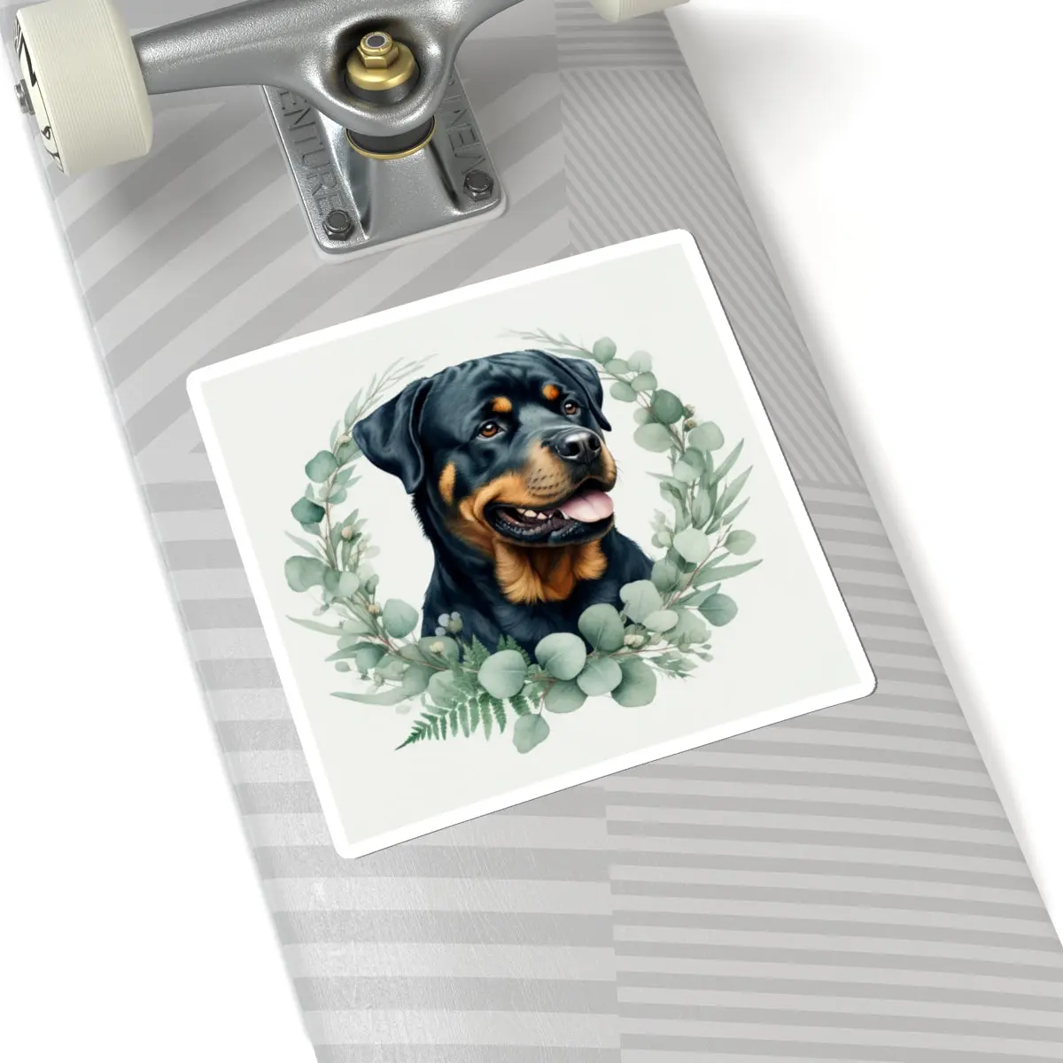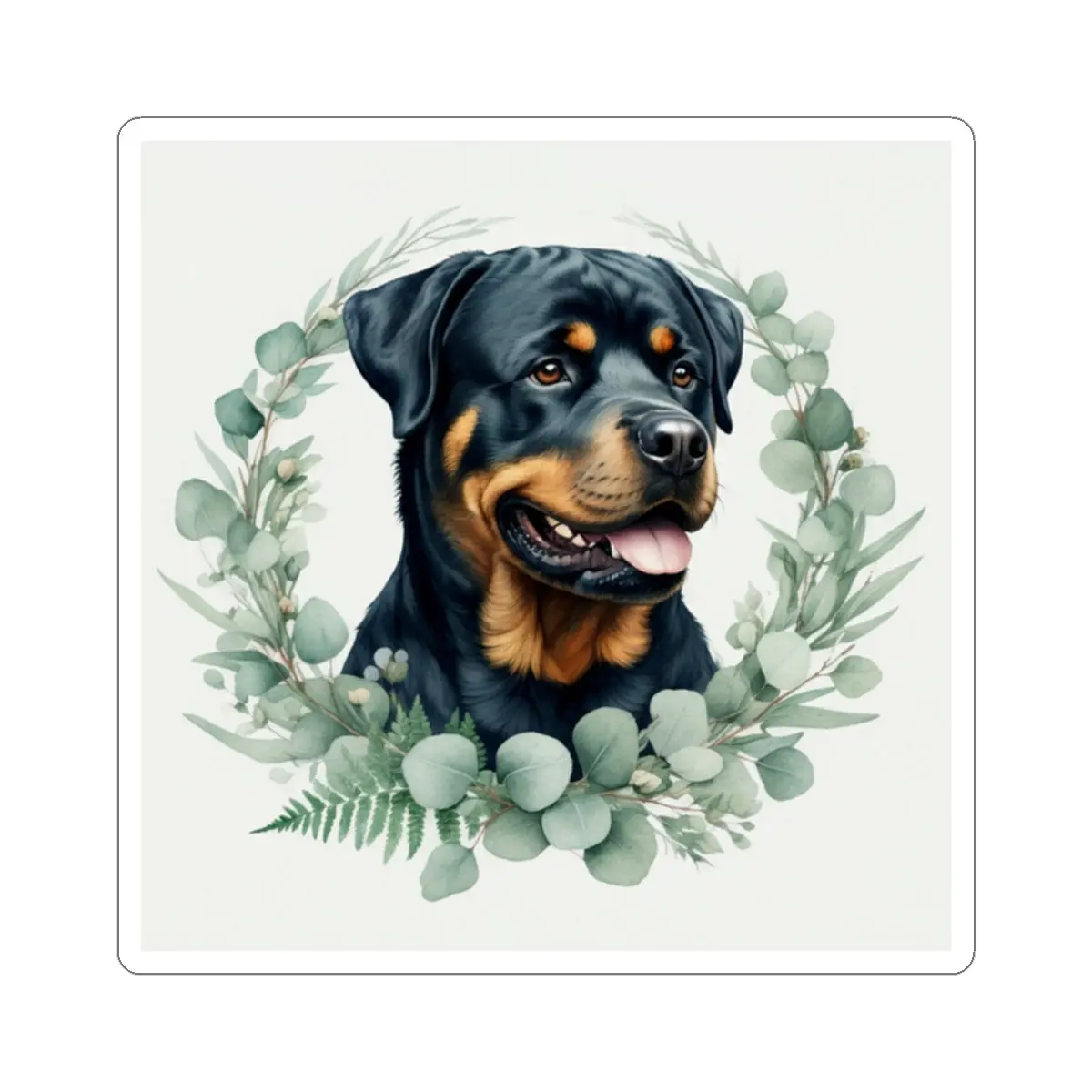 A stunning watercolor botanical portrait of your beloved rottweiler.