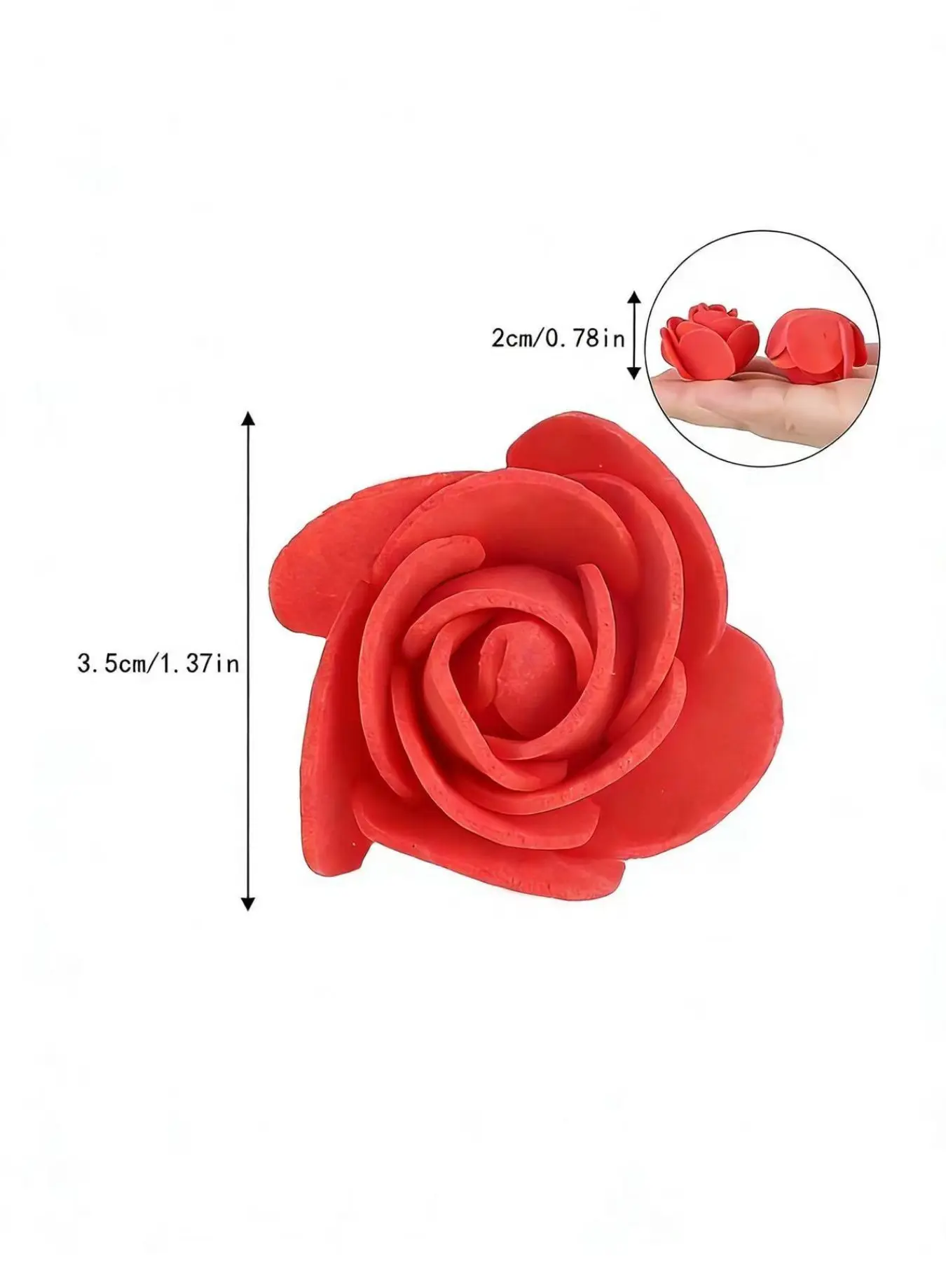 100pcs Pe Rose Foam Flower Heads, Wedding Party Decoration Accessories, Artificial Fake Flowers for Candy Boxes, Realistic Foam Flowers