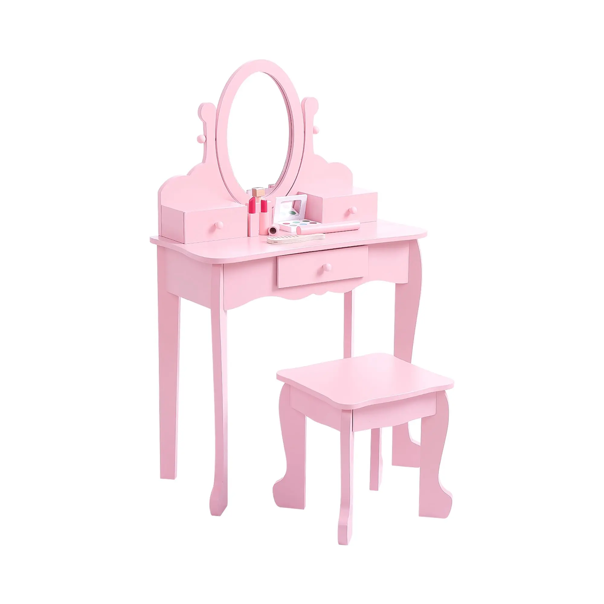 · Our vanity desk will come to your girls, including a vanity with adjustable angle mirror , a stool and a wood makeup play set for endless fun. It allows children to experiment with different looks and have their own space and tools for grooming can promote a sense of independence and responsibility for their personal care routines.