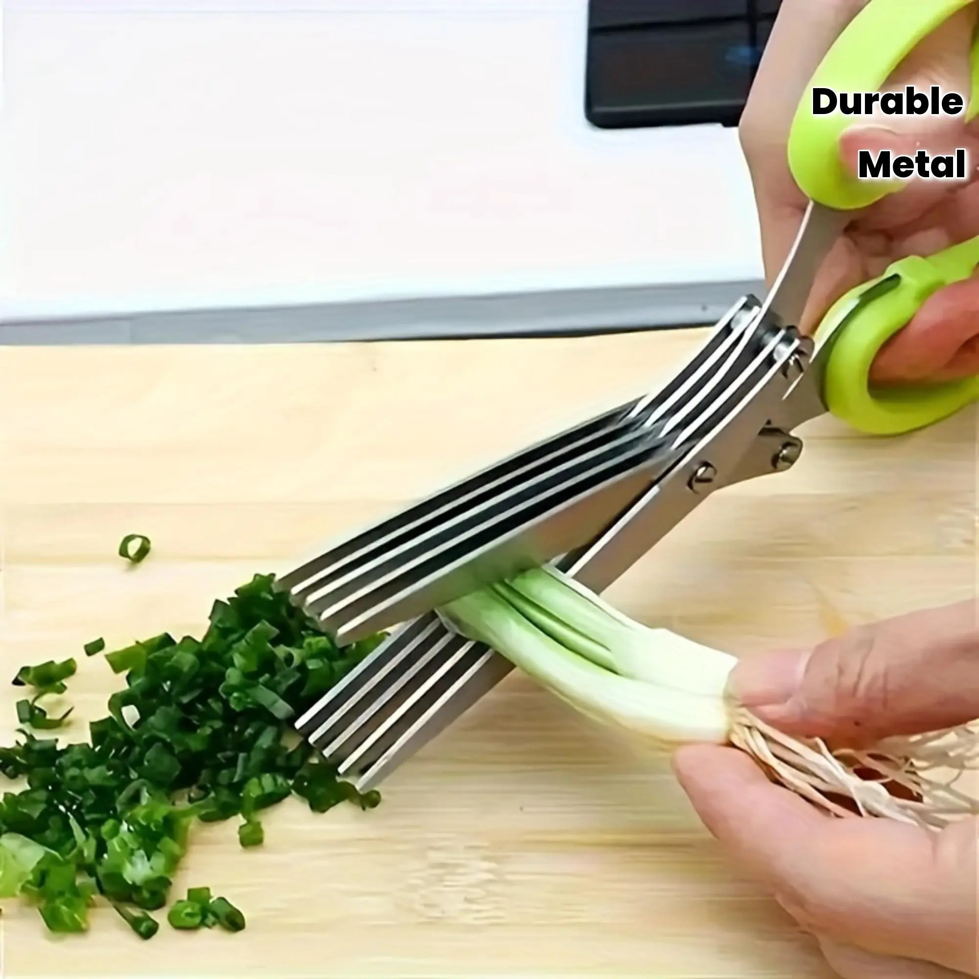 Herb Scissors - Multi-Layer Kitchen Shears for Chopping Herbs & Green Onions - Ergonomic Metal Shredder with Safety Cover & Easy Clean Design, Food Contact Material, Kitchen Shears | Ergonomic Scissors | Durable Kitchen Tool, Herb Scissors