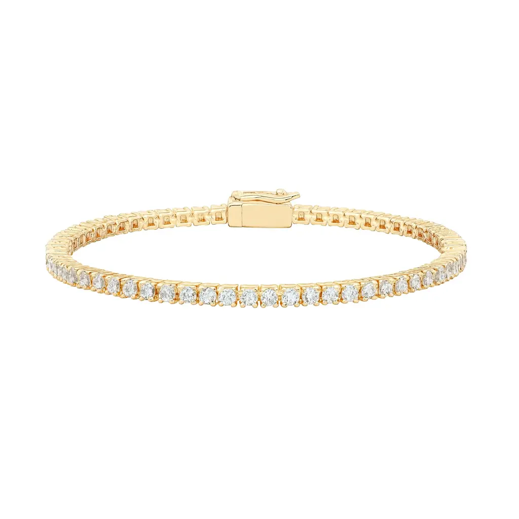 Elevate your everyday style with this timeless 14K gold plated tennis bracelet. Designed with brilliant 4mm cubic zirconia stones, it delivers the perfect balance of elegance and sparkle. Each stone is expertly set to create a continuous, radiant line that catches the light beautifully from every angle.