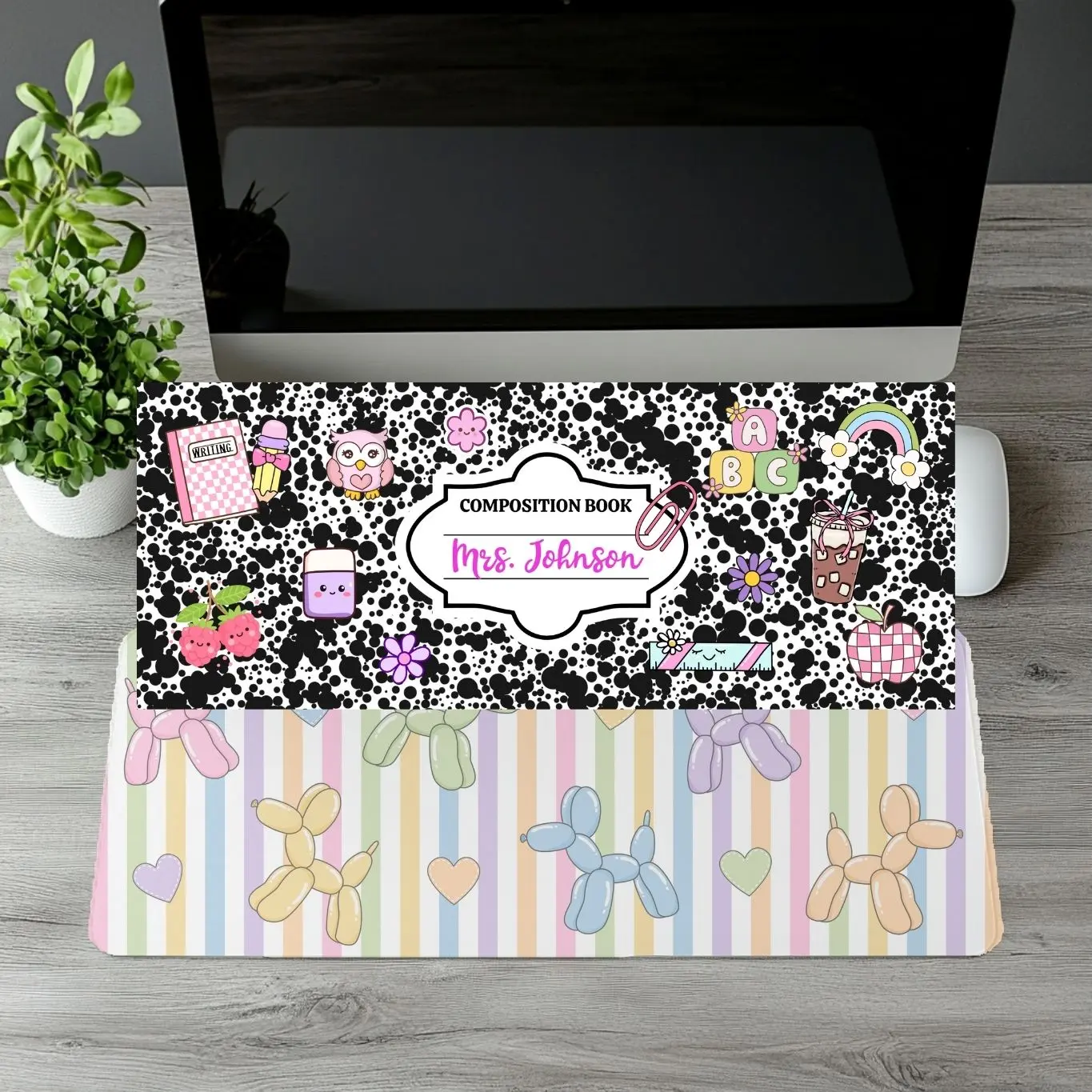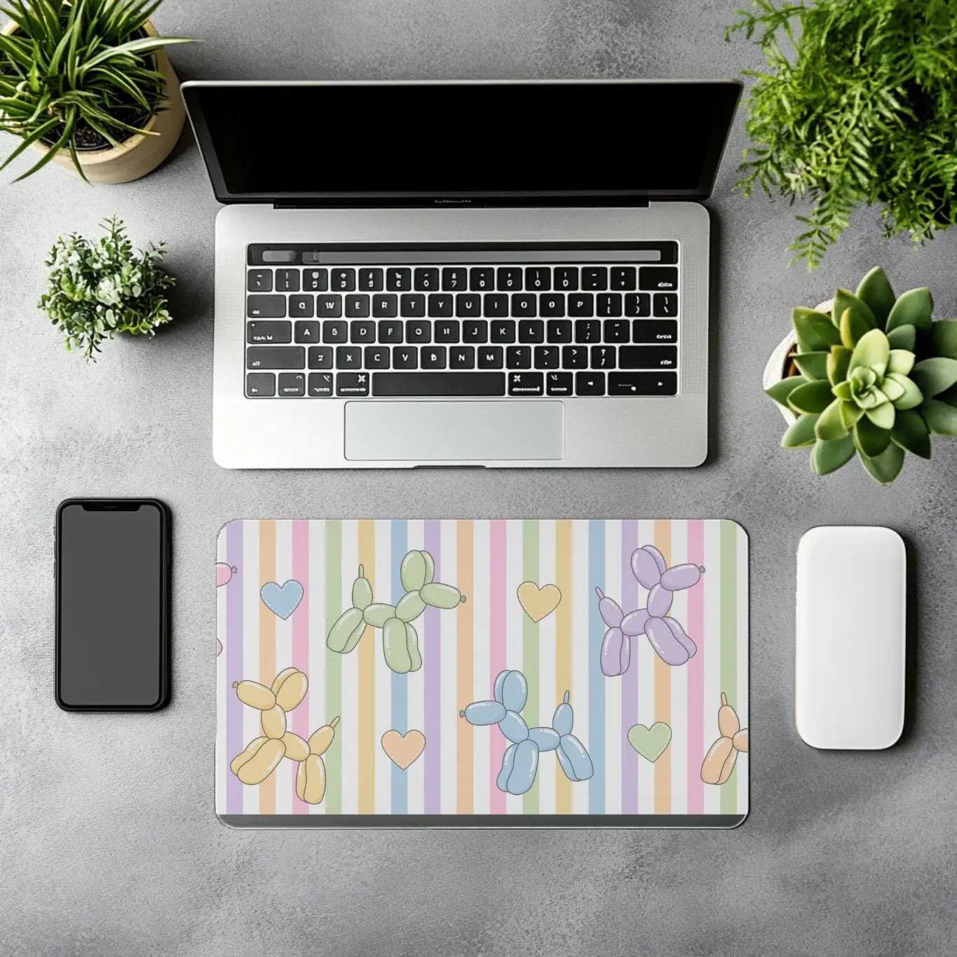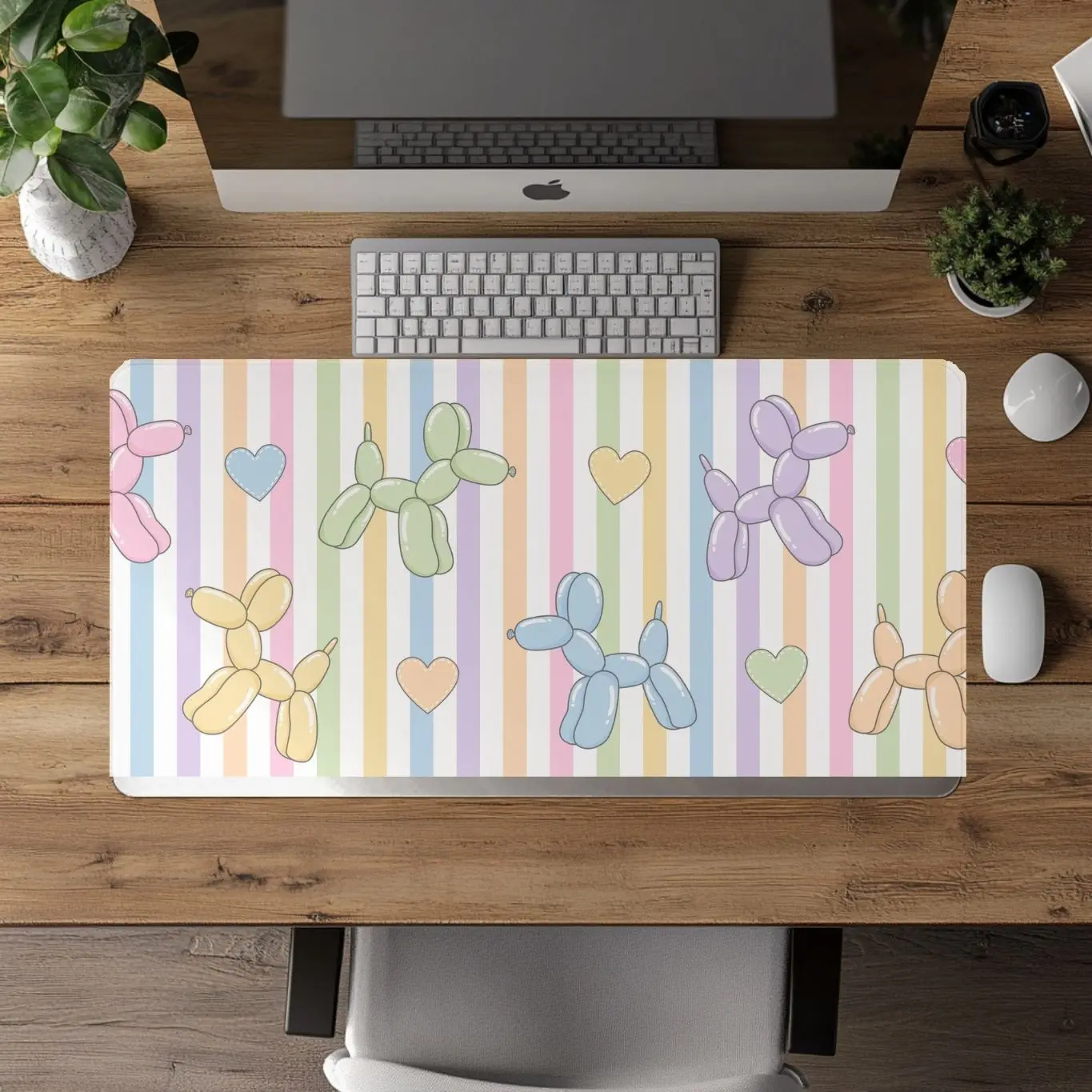 Add a pop of playful charm to your workspace with our Balloon Dog Hearts & Stripes Desk Mat. Designed for lovers of coquette, preppy, and kawaii aesthetics, this cute mouse pad instantly elevates your home office, dorm desk, or study space.