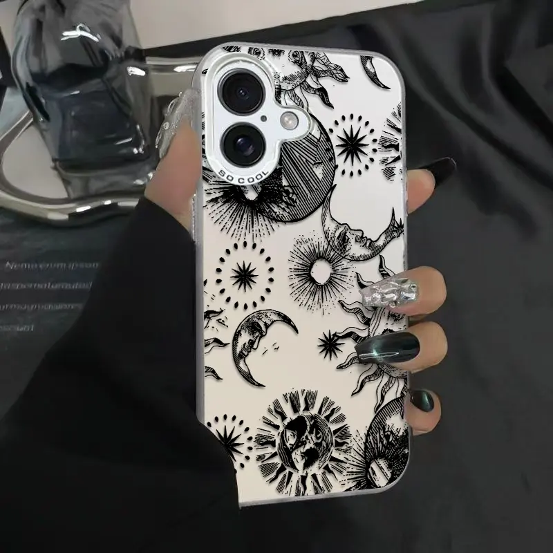 Vintage Celestial Print Phone Case Modern Mystical Design Durable Hard Acrylic Back Case With An Anti-Yellowing Coating, Made From High-Quality Designed For Reliable Drop Protection For Your Phone For iPhone 17.16.15.14.13.12.11.X.XS.XSMAX.XR.8.7