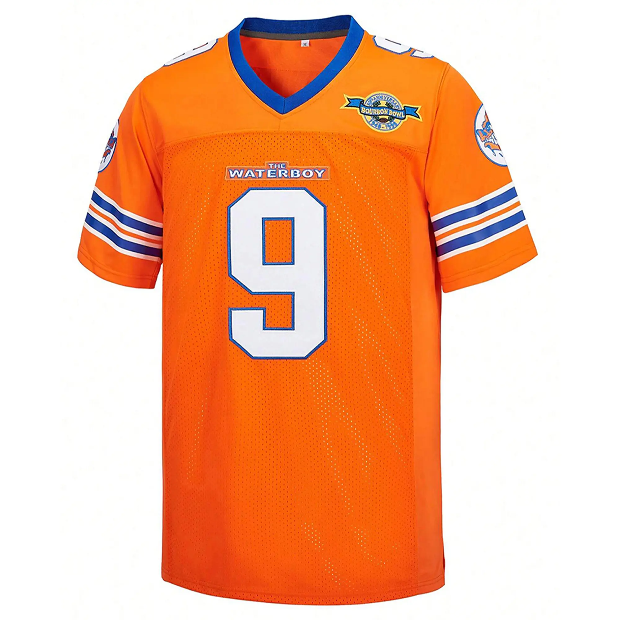#9 Bobby Boucher Football Jersey The Waterboy Adam Sandler Mud Dogs Bourbon Bowl Movie Jersey,Number Stitching rugby Jersey